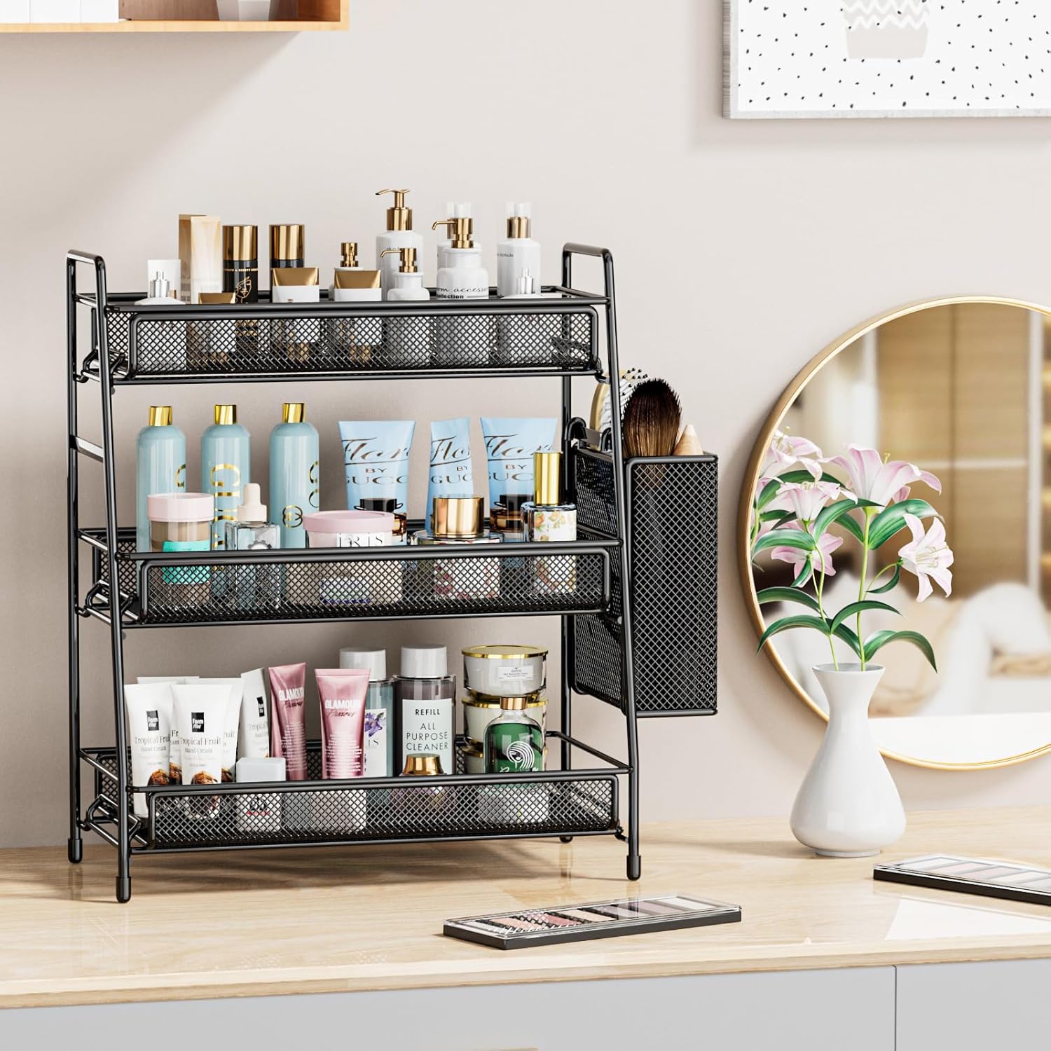 EKNITEY Bathroom Countertop Organizer Shelf - 3 Tier Counter Spice Rack Metal Makeup Rack Small Coffee Station Organizer for Sink/Bedroom/Living room/Kitchen/Office