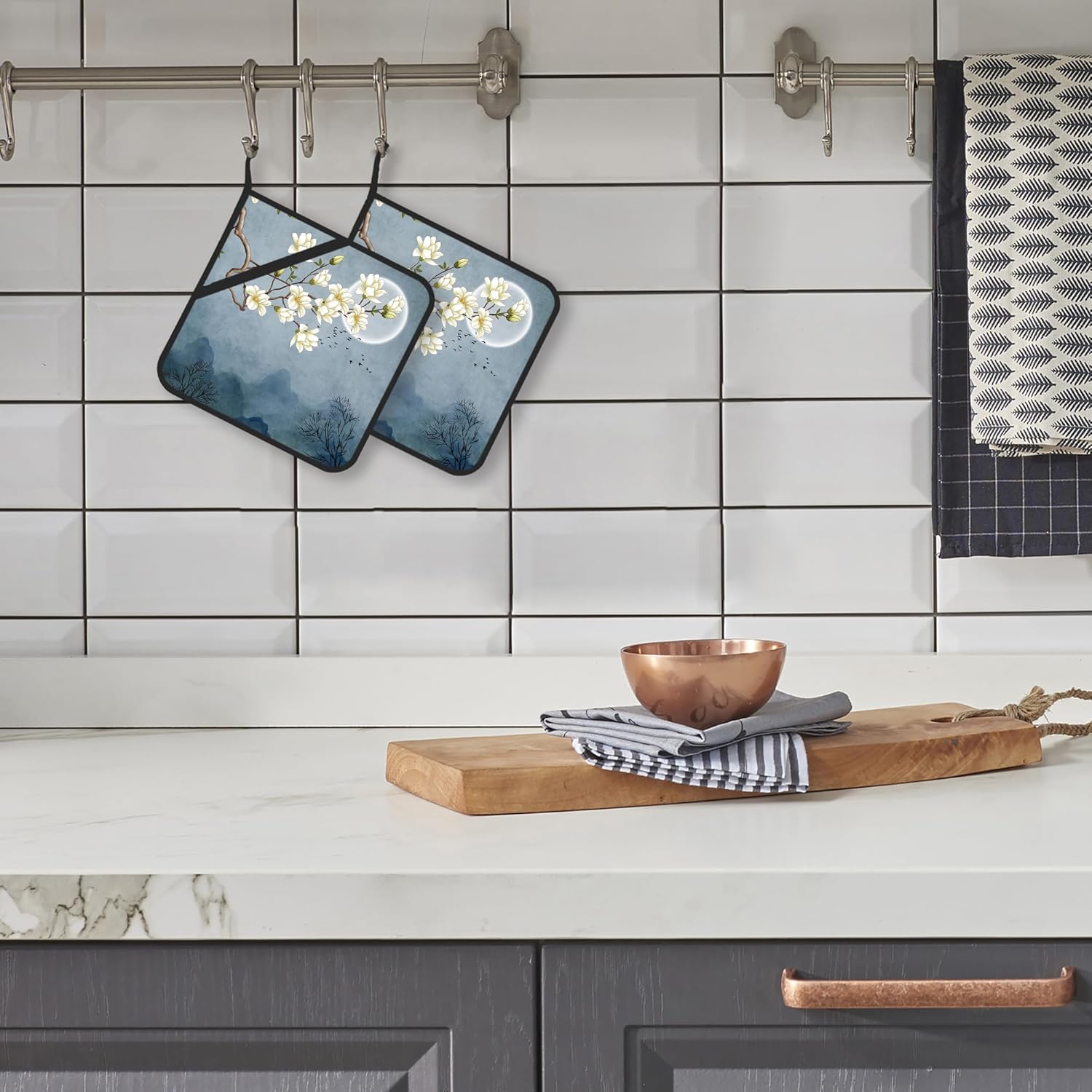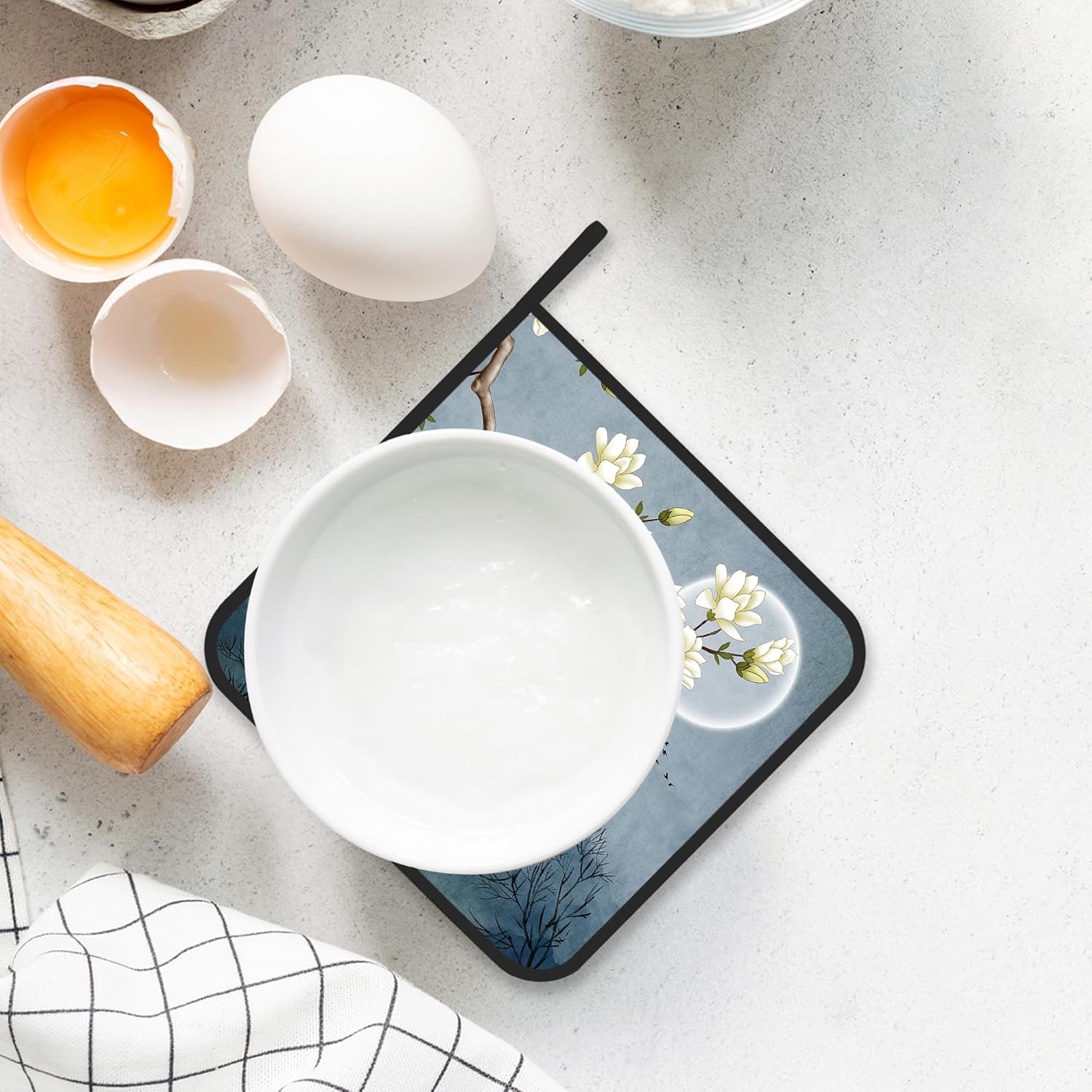Pot Holder Set of 2,Moon Blossom Japanese Style Kitchen Heat Resistant Potholder for BBQ Cooking Baking,Food Hot Pat for Women Men Kitchen Wear