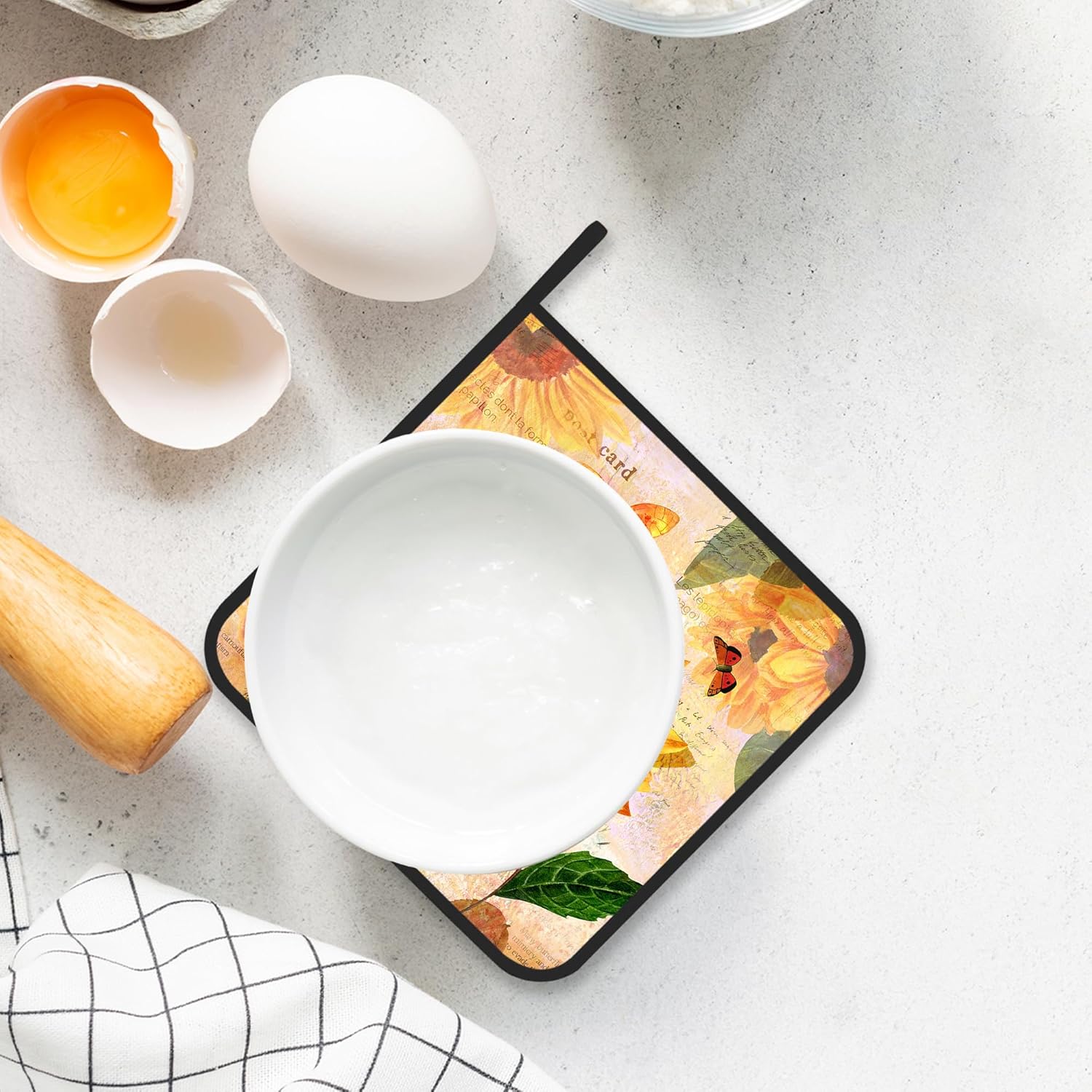 - Practicality: The potholders are not only functional but also practical. The combination of polyester and heat-resistant coating ensures easy cleaning and maintenance. They can be easily washed by hand or machine, and their compact size allows for convenient storage in kitchen drawers or hanging hooks.