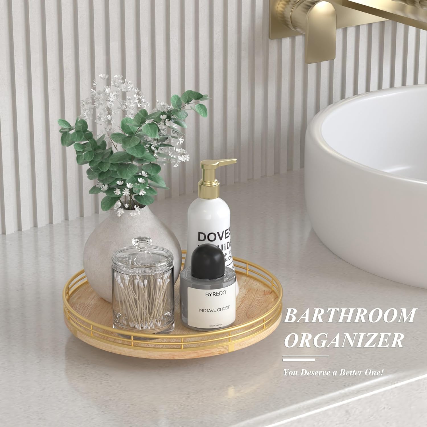 Farmhouse Oak 10" Lazy Susan Turntable Organizer for Cabinet, Round Wooden Lazy Susan Organization and Storage for Dining Table, Pantry, Kitchen, Countertop, Cupboard,Home Decor