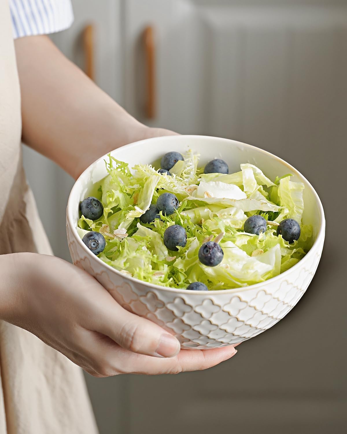 - 【Durable Stoneware】Made of premium ceramic, crafted with a farmhouse decor finish, embossed with 4 different patterns, this aesthetically-pleasing ceramic bowls set offer scratch resistance and durability, ensuring long-lasting use