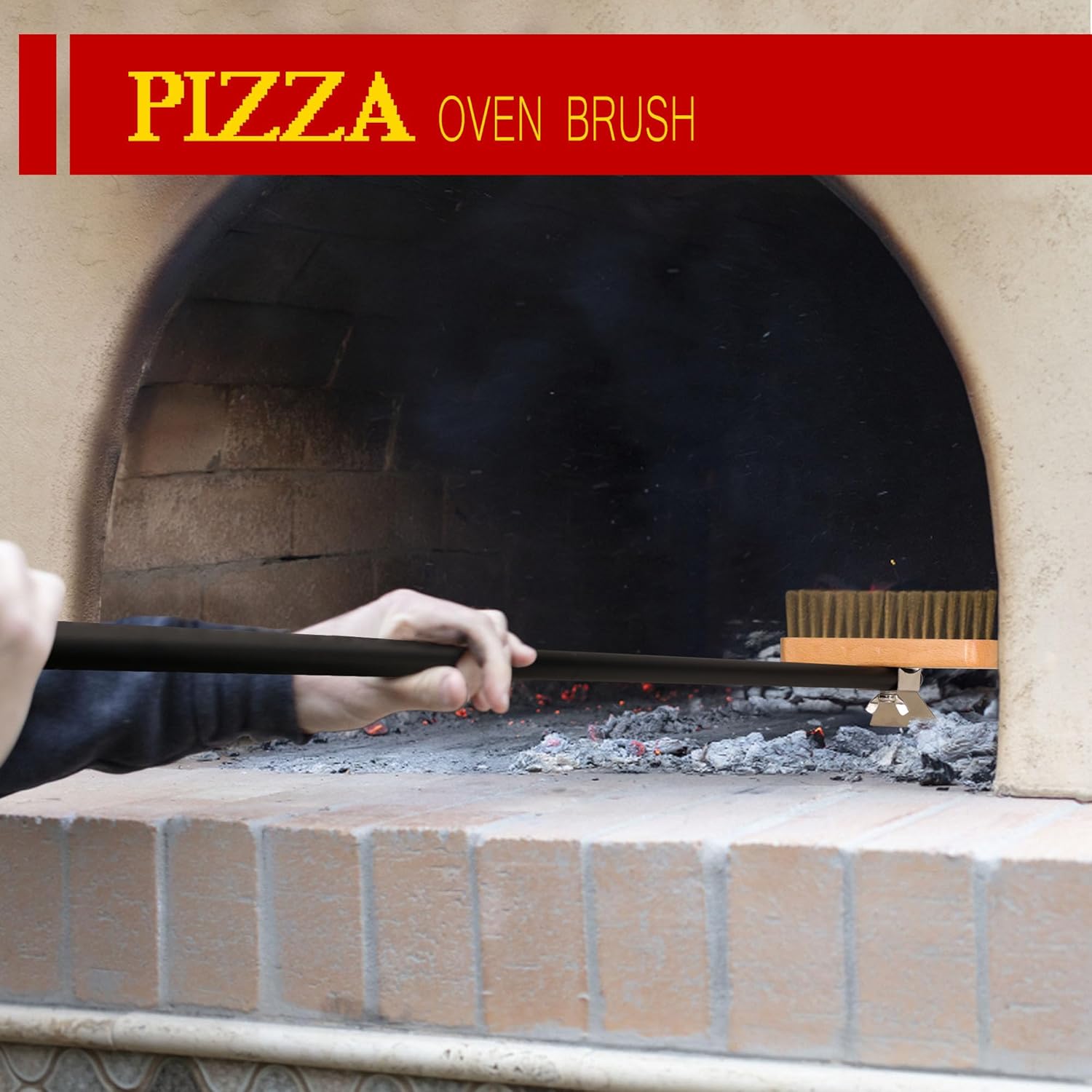 - The oven brush has a detachable 32 "long handle and a metal scraper on the back, making it perfect for penetrating deep into the pizza oven, removing residual burnt food, and thoroughly cleaning the back of the oven within a safe distance.