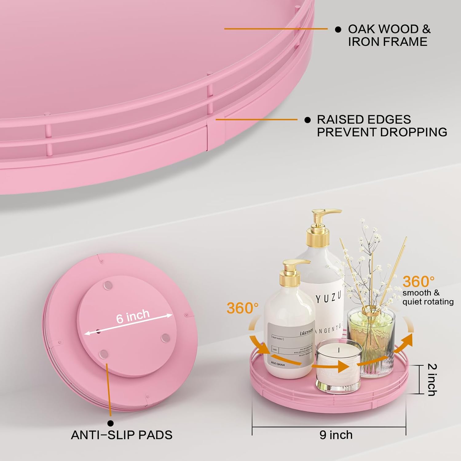 - ๐ง๐ต๐ผ๐๐ด๐ต๐๐ณ๐๐น ๐๐ฒ๐๐ถ๐ด๐ป: The turntable tray features a smooth and silent 360ยฐrotation; Bottom slip-resistant pads for stability and protect your countertop from scratches; Raised edges on each organizer tray to keep items from falling out; Easy to use, no installation required
