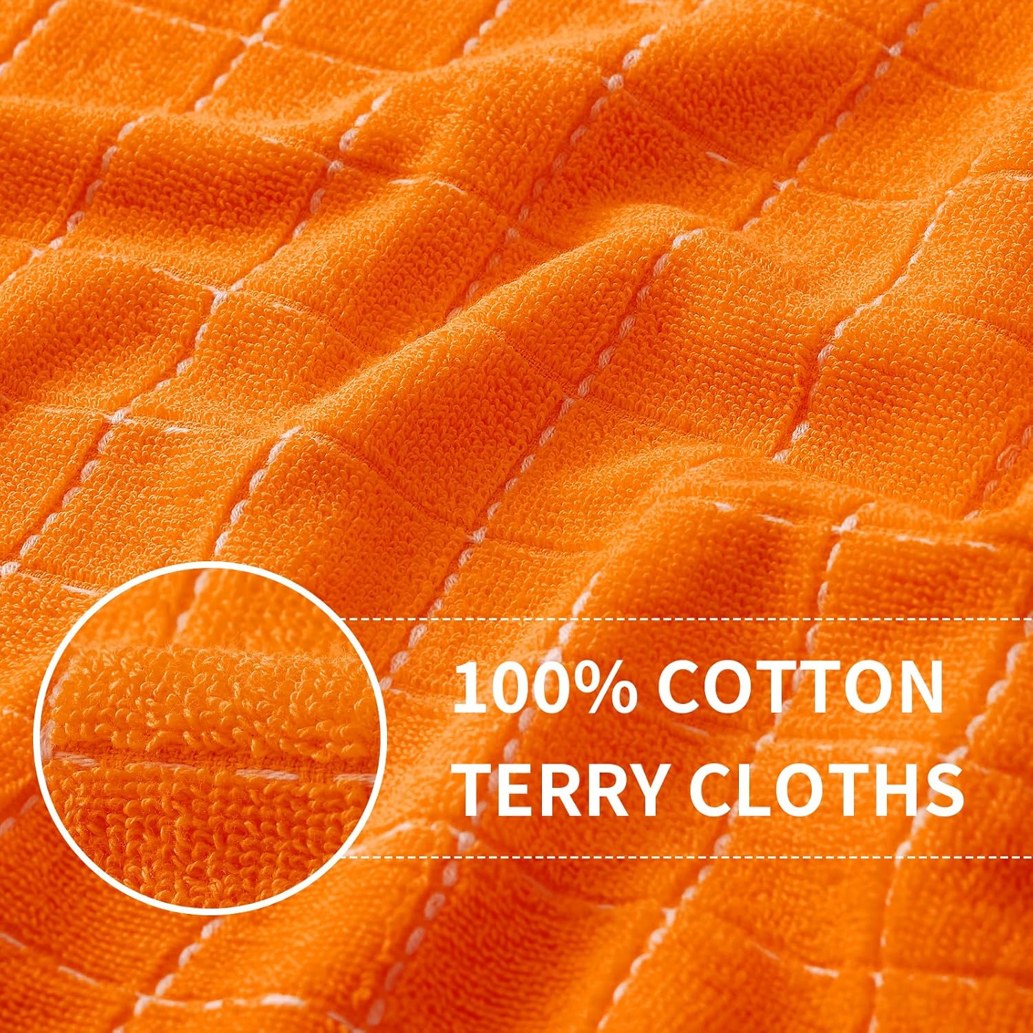 Homaxy 100% Cotton Terry Kitchen Towels(Orange, 13 x 28 inches), Checkered Designed, Soft and Super Absorbent Dish Towels, 8 Pack
