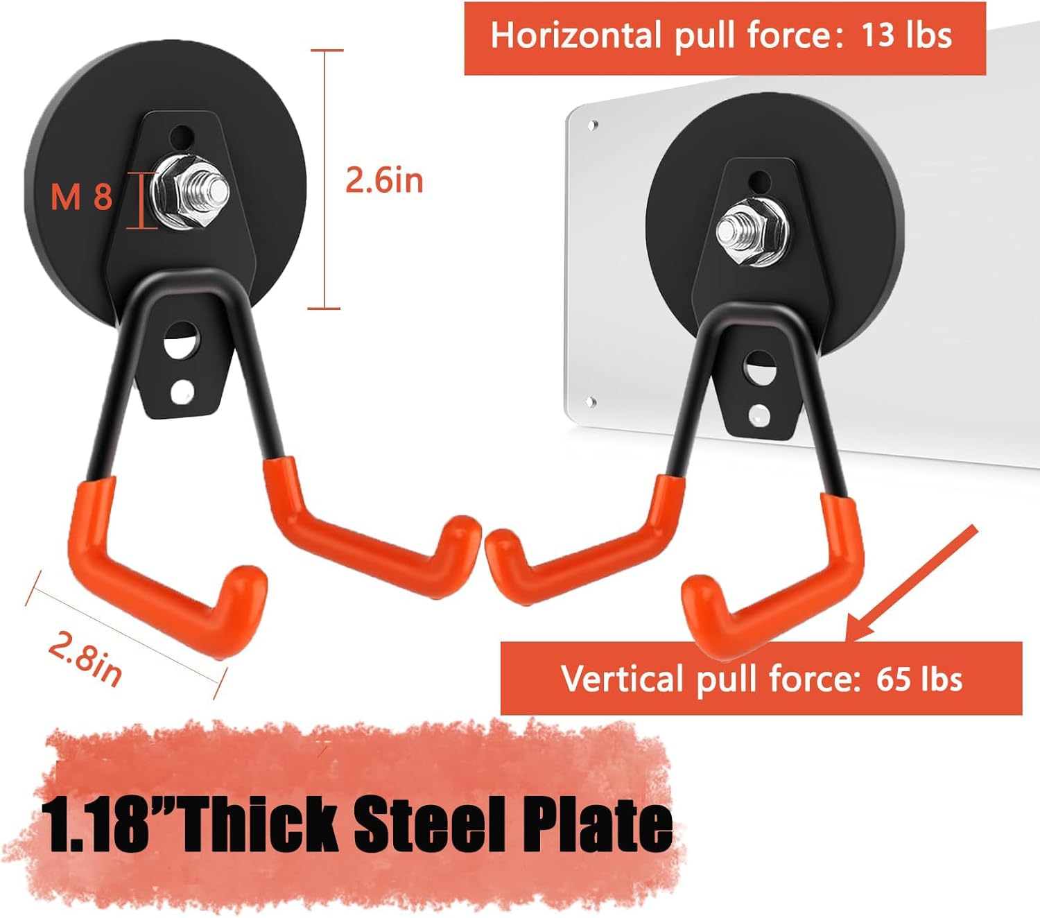 - š§²[Large Storage Magnetic Hooks]:These magnetic hooks includes 4 (2.6inch) strong magnet base with threaded bar, spacers,nuts and 4 PVC coated medium L hooks. We tested that our medium L magnetic hook can hold any kind of EV charger,more than one gallon bottled water, any kind of garage tool,drill, toolbox etc.