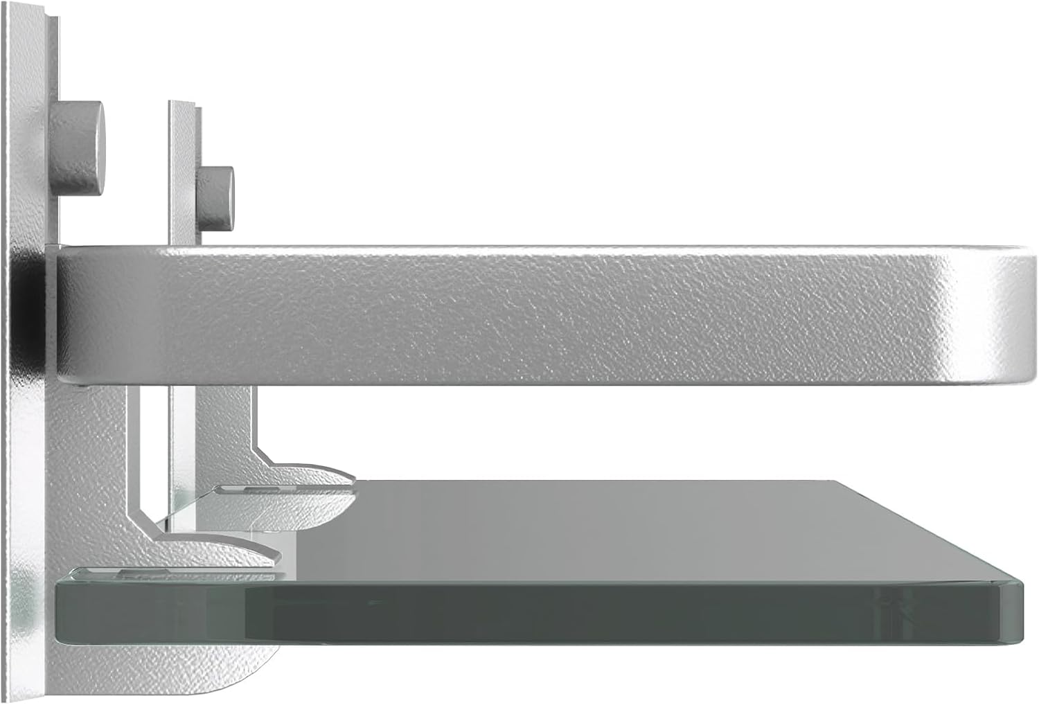 Danpoo Clear Tempered Glass Wall Shelf, Wall-Mounted Organizer for Bathroom, Kitchen(Matte Silver)