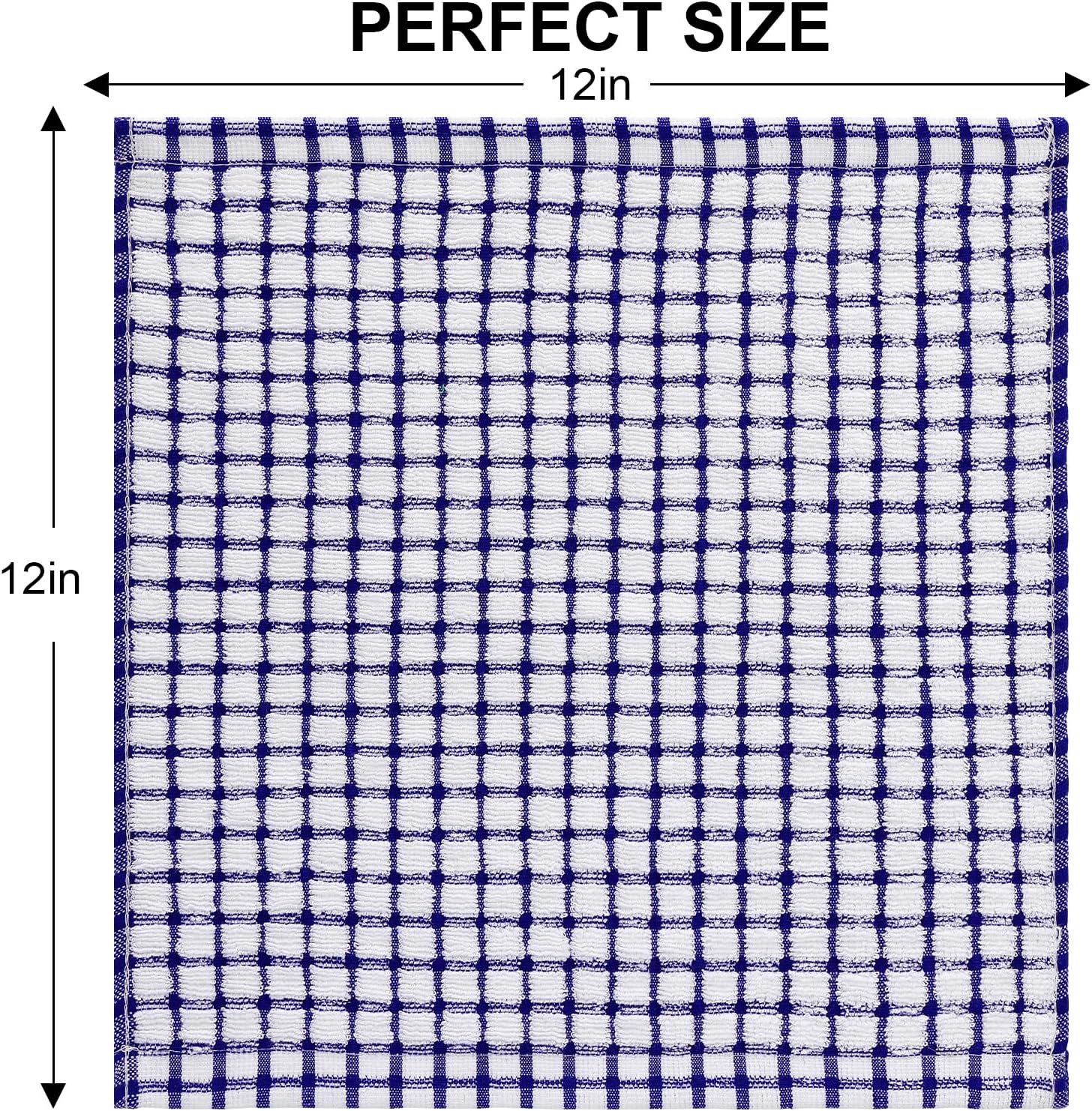Kitinjoy Cotton 8 Pack Terry Kitchen Dish Cloths, 12 x 12 Inches Super Soft and Absorbent Dish Rags, Quick Drying Dish Towels for Washing Dishes, Blue