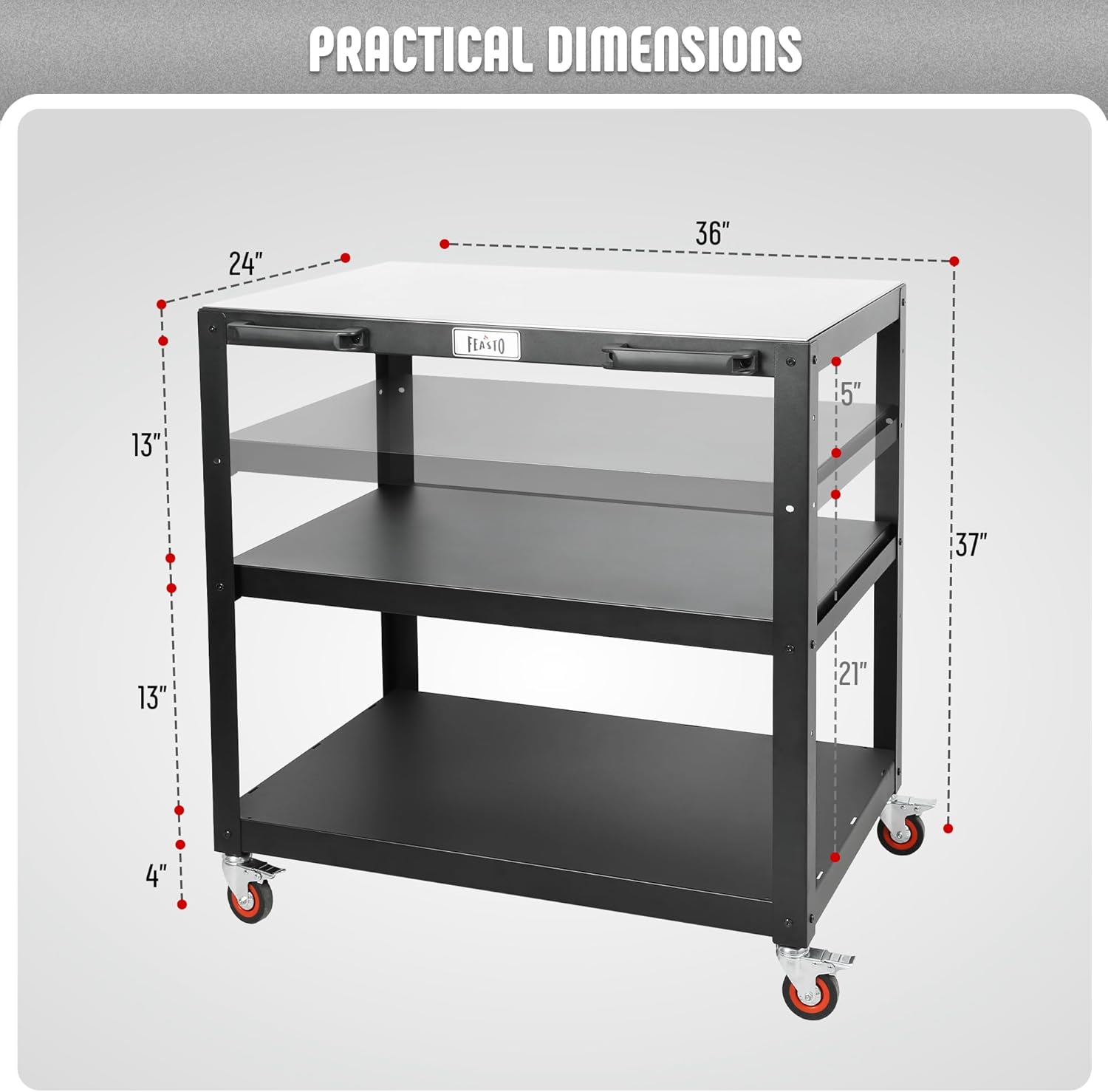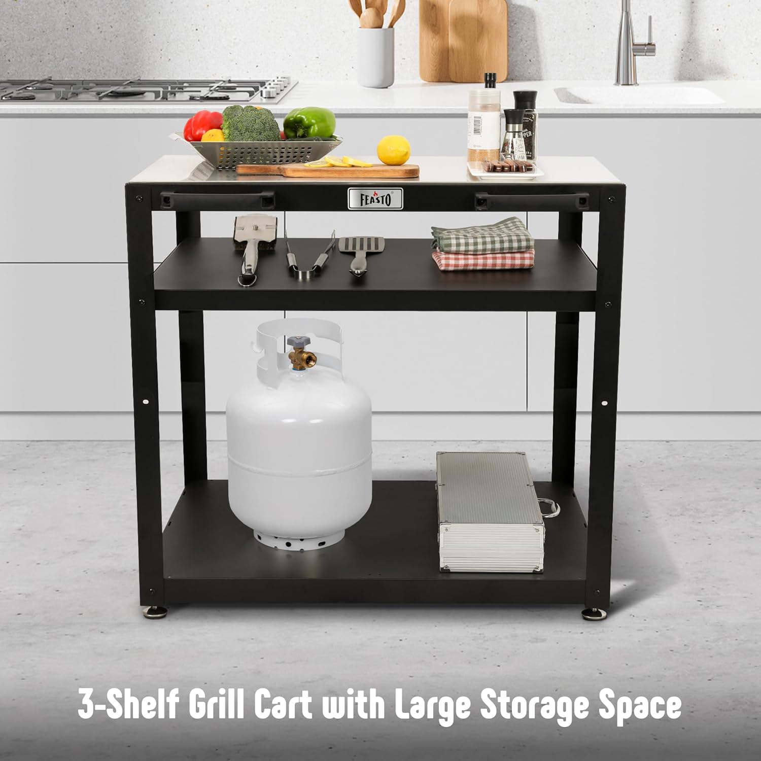 - Ample Space: The outdoor prep table has 3-Shelf design and it facilitates an ample space for food preparation or ideal location for pizza oven,serve you outdoor or indoor needs such as pizza oven stand table.It even meets the needs of commercial kitchens
