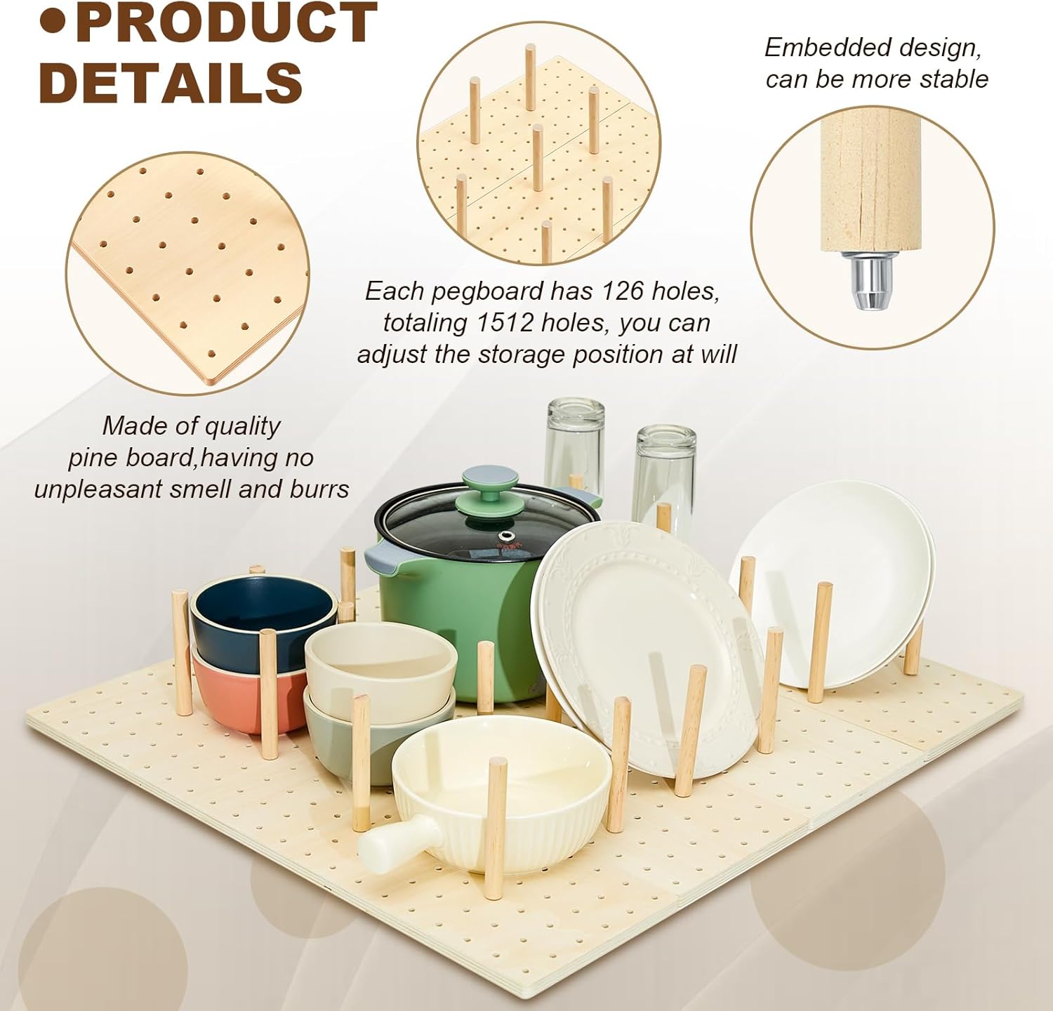 - Easy Installation and Customizable Layout: simply insert the provided wooden pegs into different positions on the wood pegboard to fulfill your storage needs; This feature not only aids in maximizing your storage space but also provides the fun of DIY
