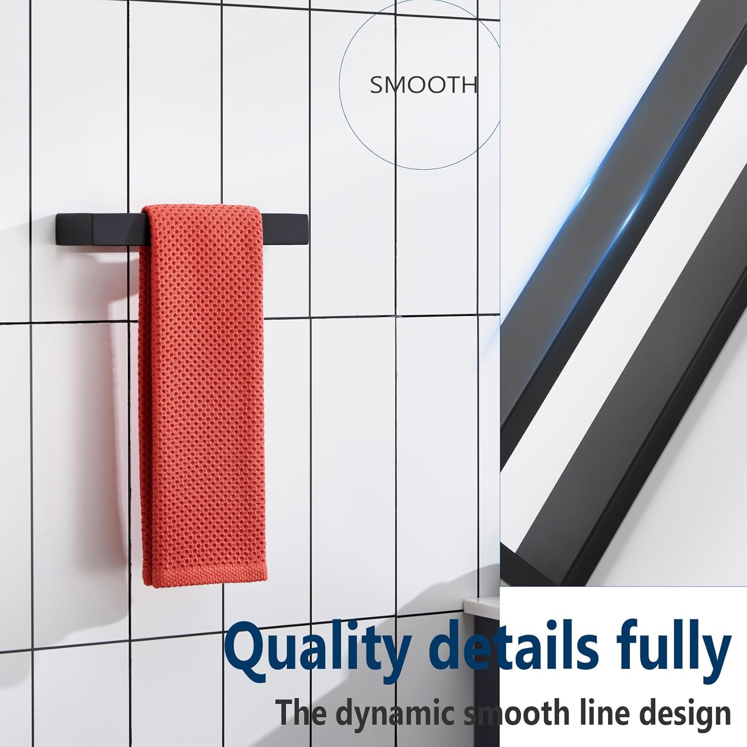 KOKOSIRI Towel Ring Matte Black Hand Towel Bar Holder 9-Inch Kitchen Rack Stainless Steel for Bathroom Hardware Wall Mounted, 1 Pack B4008BK-L9
