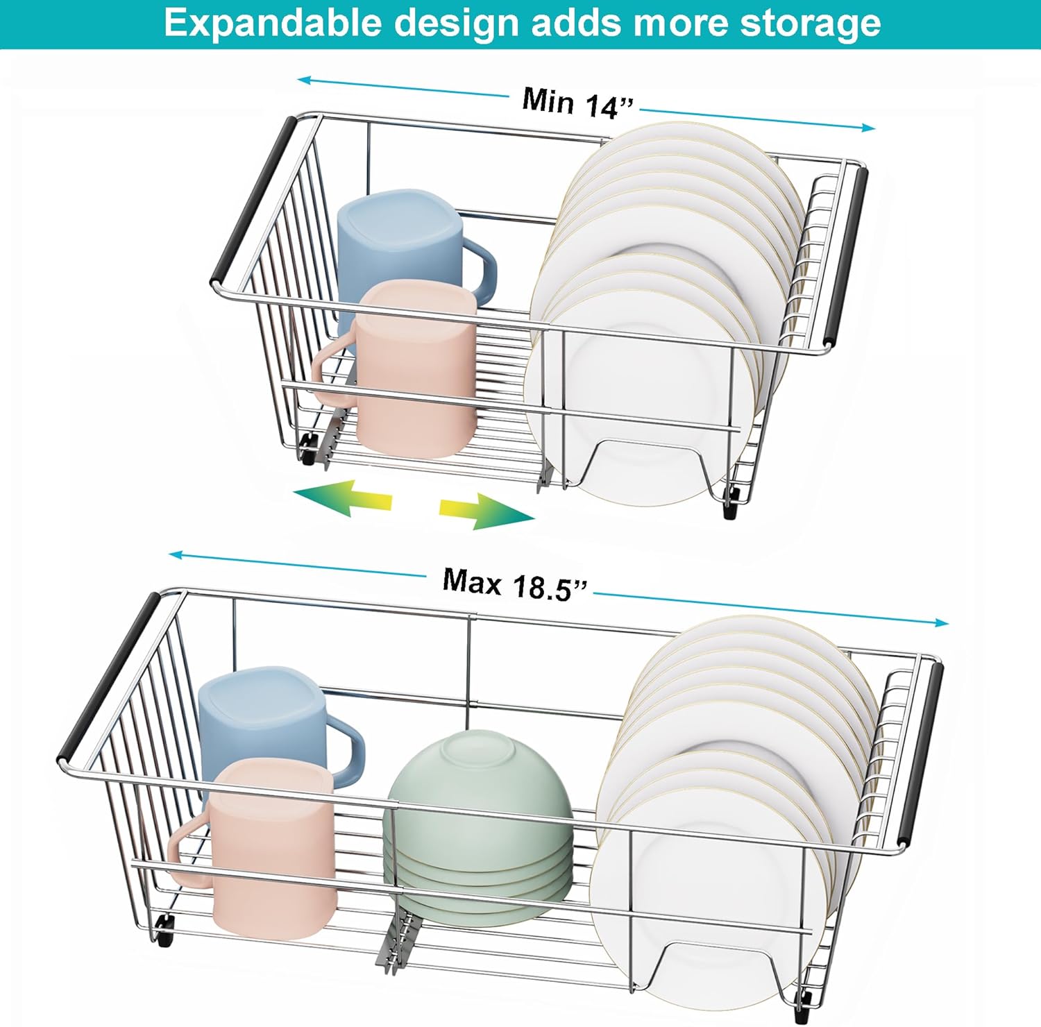 - β EXTENDABLE MAIN BODY ADDS MORE STORAGE CAPACITY - Unlike other dish racks only with expandable arms, this dish drying rack comes with adjustable main body capacity, the main body can be adjusted from 14" to 18.5".