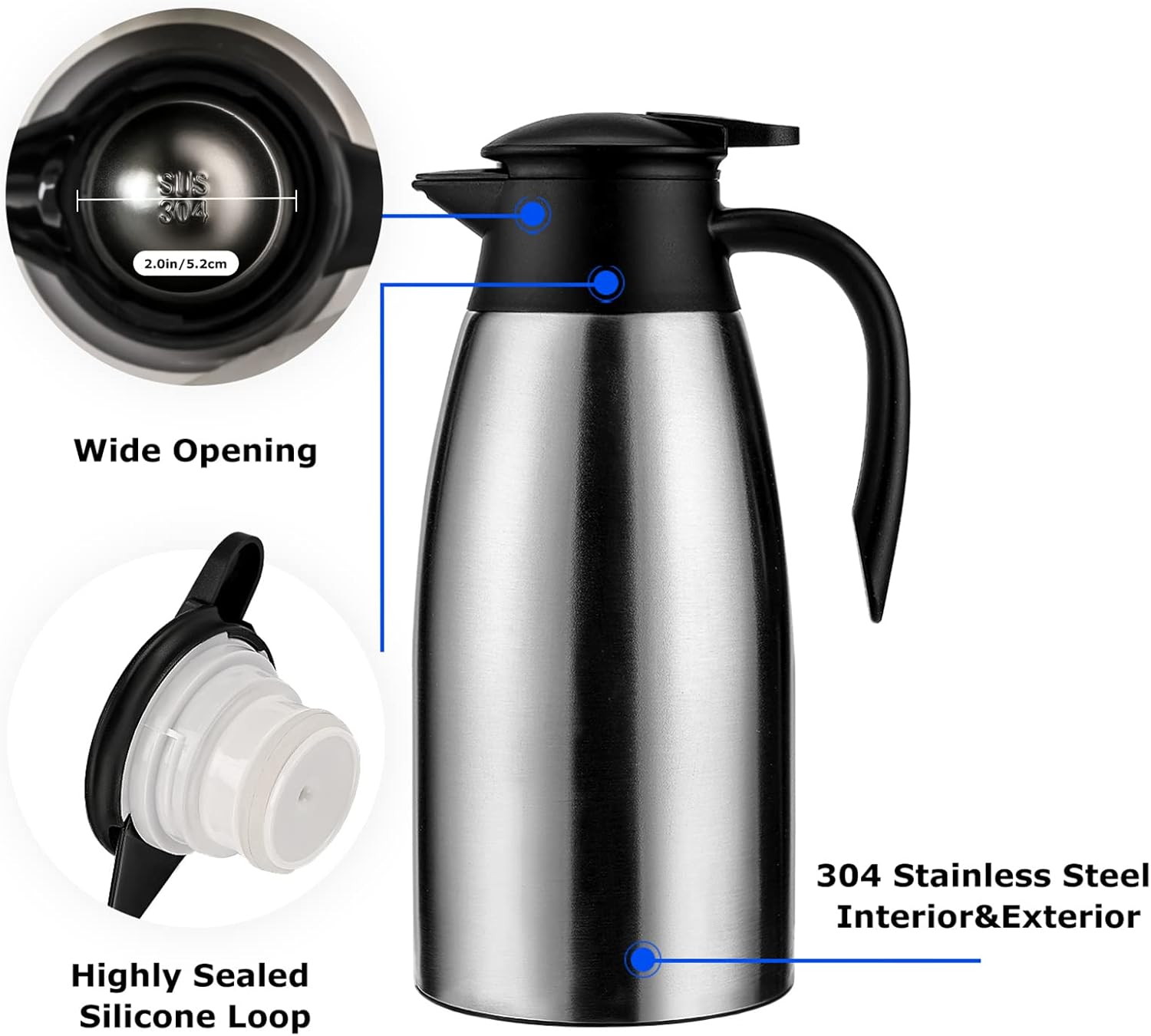 6 sets 70 oz Thermal Coffee Carafe for keeping hot, Carafe for hot liquid, Airpot Insulated Stainless Steel Vacuum Thermal Pot for Coffee, Hot Water,Keep Hot 12 Hours (4silver)