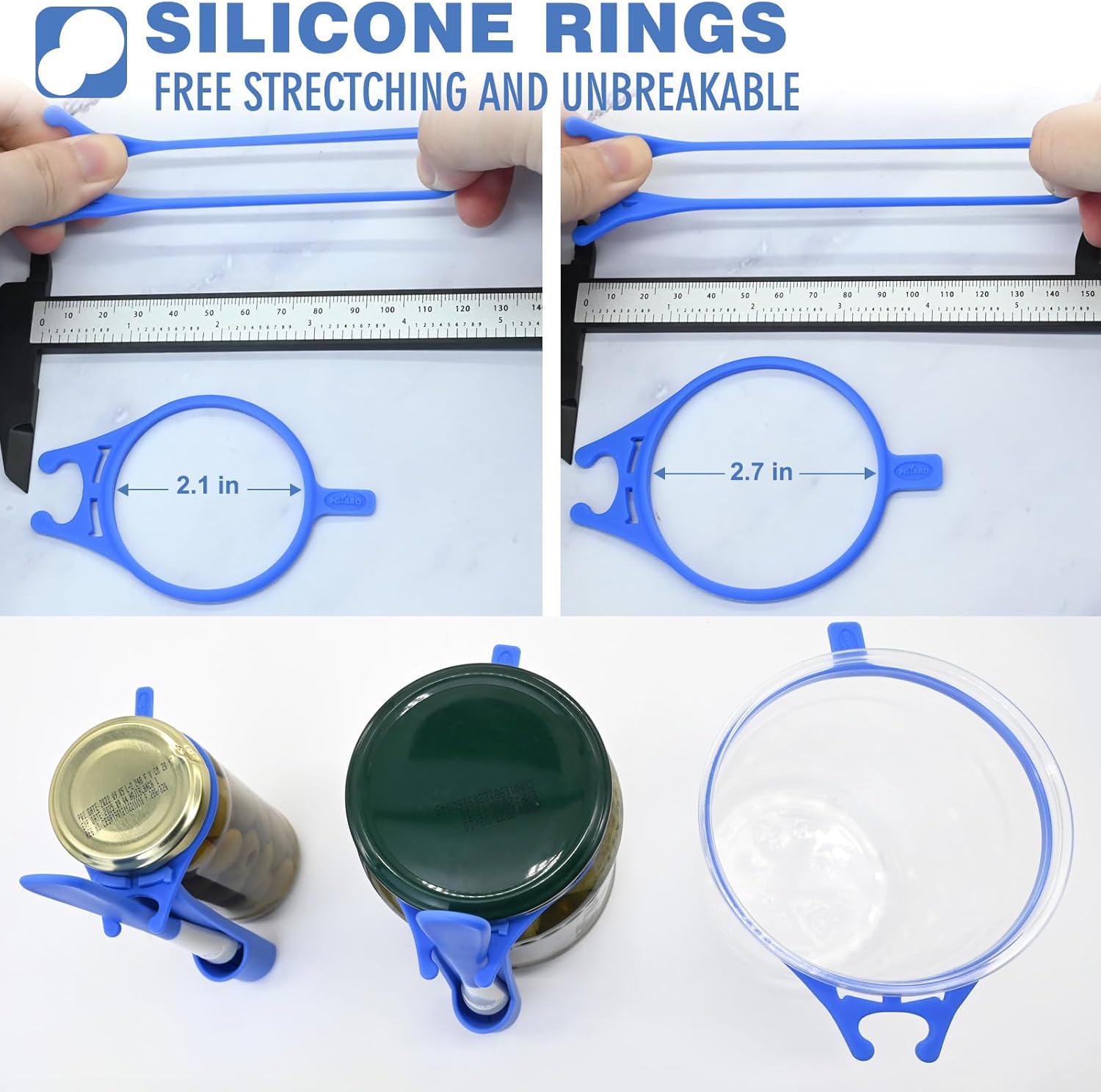 - [FREE STRECTCHING] The matching ring is made of silicone material, which is very elastic and will not break during use. Two different sizes to accommodate different sized jars in the kitchen.