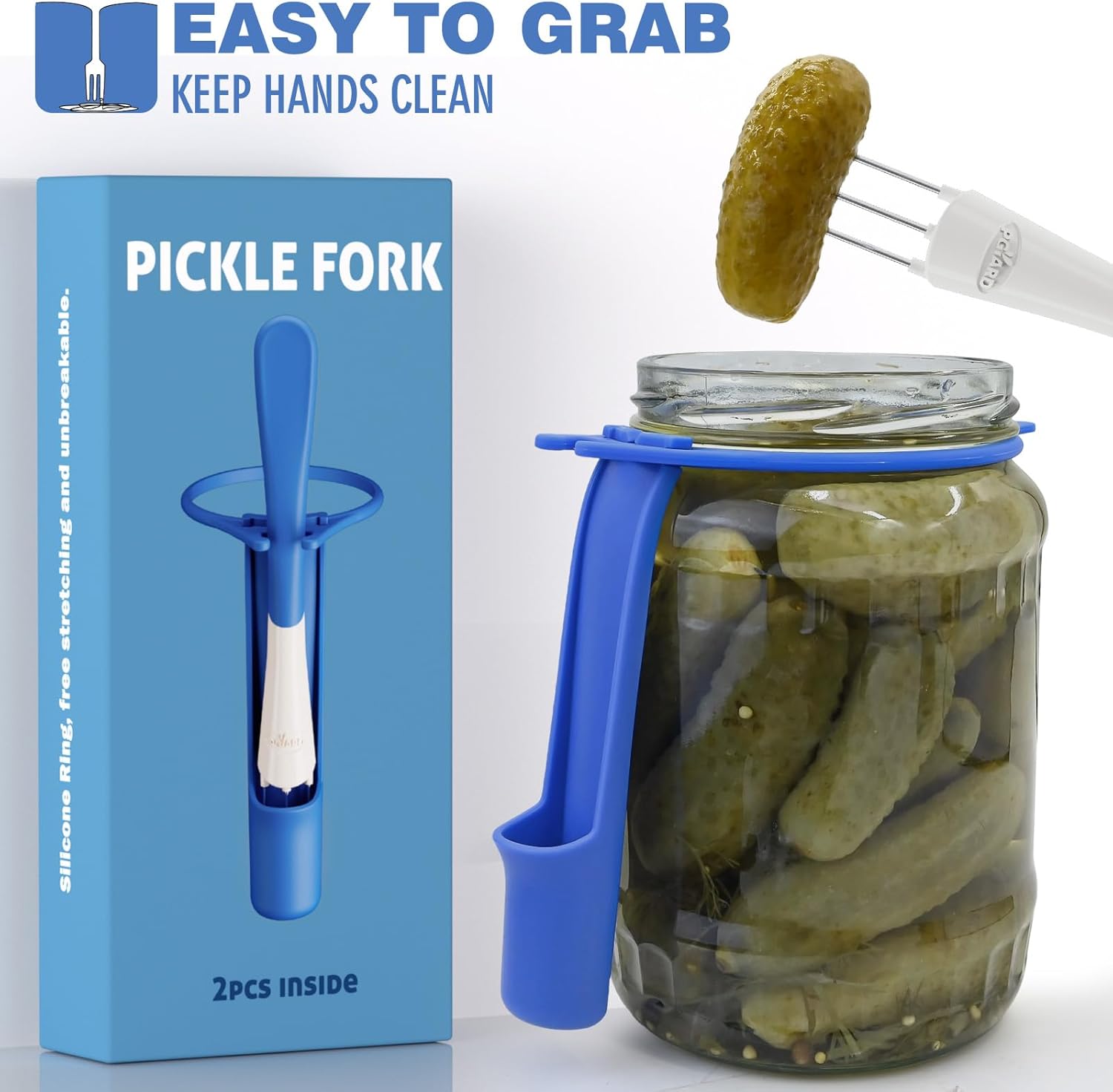 2 Pack Pickle Fork Pickle Grabber Tool-Pickle Picker for the jar, Kitchen Gadgets Pickle Gifts Suitable for Olives Blue