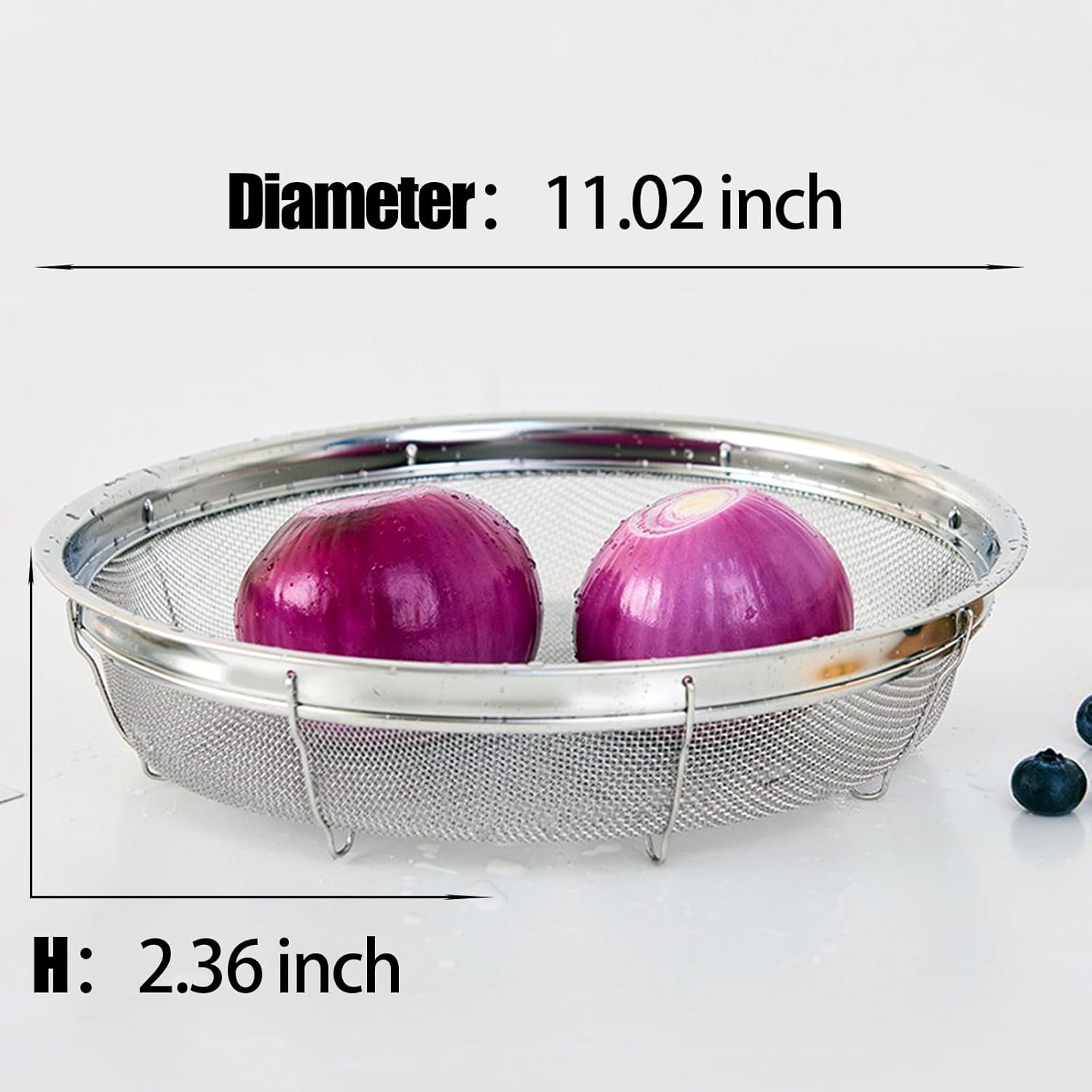 Fine Mesh Strainer for Kitchen, Stainless Steel Colander Bowl for Pasta, Rice, Fruit, Metal Net Baskets with Resting Base - Strain, Drain, Rinse (Diameter 11.02 inch)