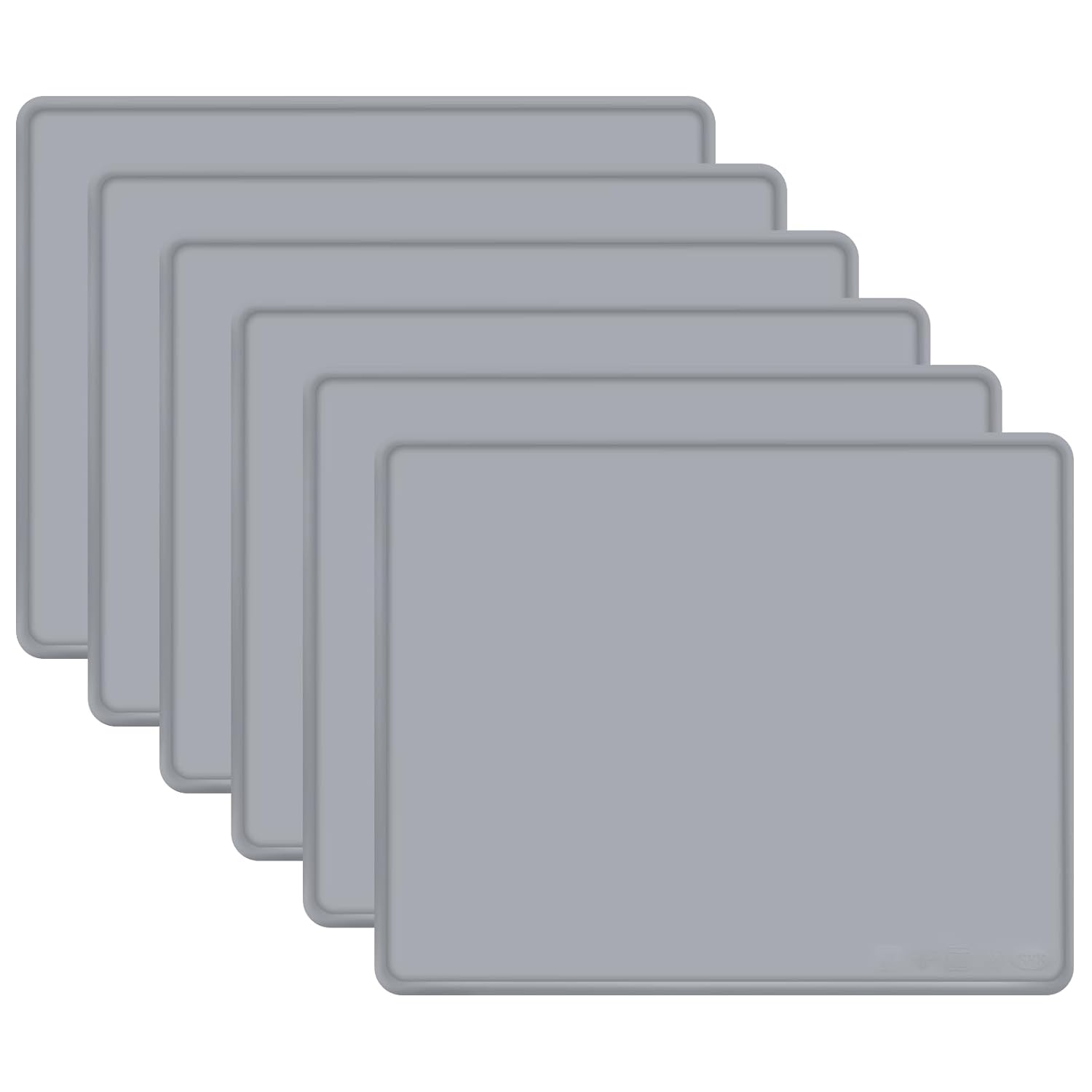 Large Silicone Mat 6 Pack, 20"x16" Silicone Craft Mats for Resin Jewelry Casting Molds, Food Grade Silicone Sheet with Raised Edge, Nonstick Waterproof, Cool Grey