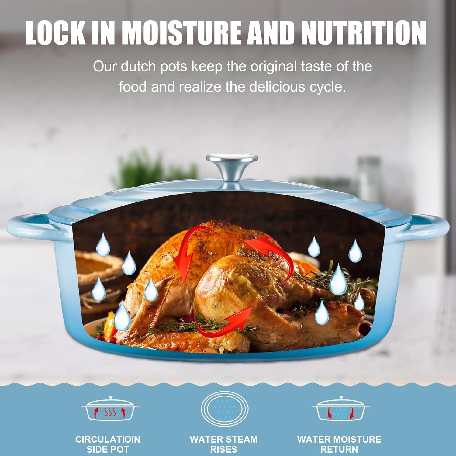 - CAST IRON DUTCH OVEN: The oval dutch oven is wider and deeper than the round dutch oven, so even a whole chicken can fit perfectly, and you no longer have to worry about the pot not being big enough
