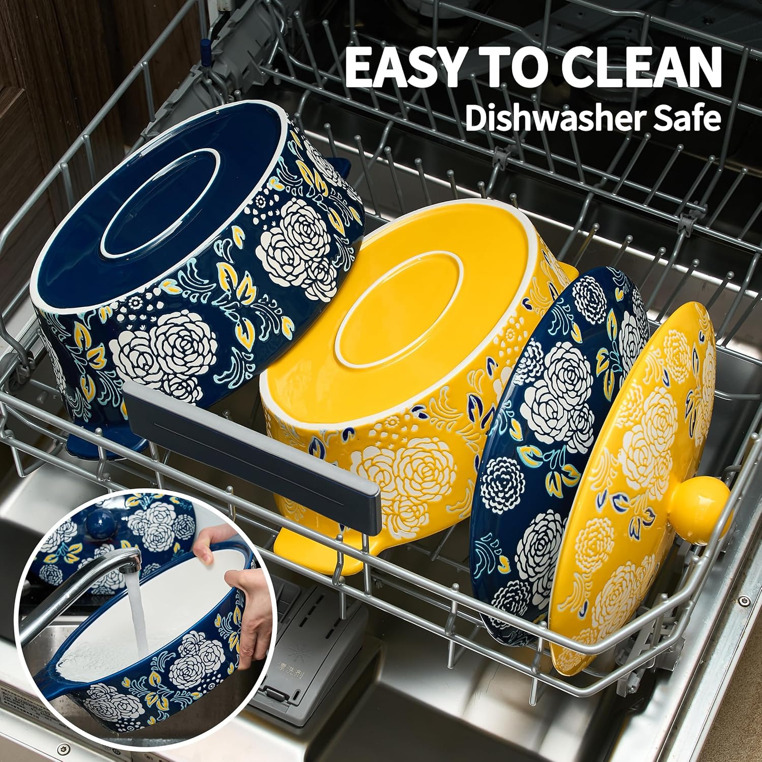 - šš§š¢šŖš®š ššš¬š¢š š§: The Casserole Dish Set with Lids features beautiful pattern design and popular color for easy daily use. Hand painted flower pattern can be a charming decoration in your table and kitchen. It will be an excellent server for your table.