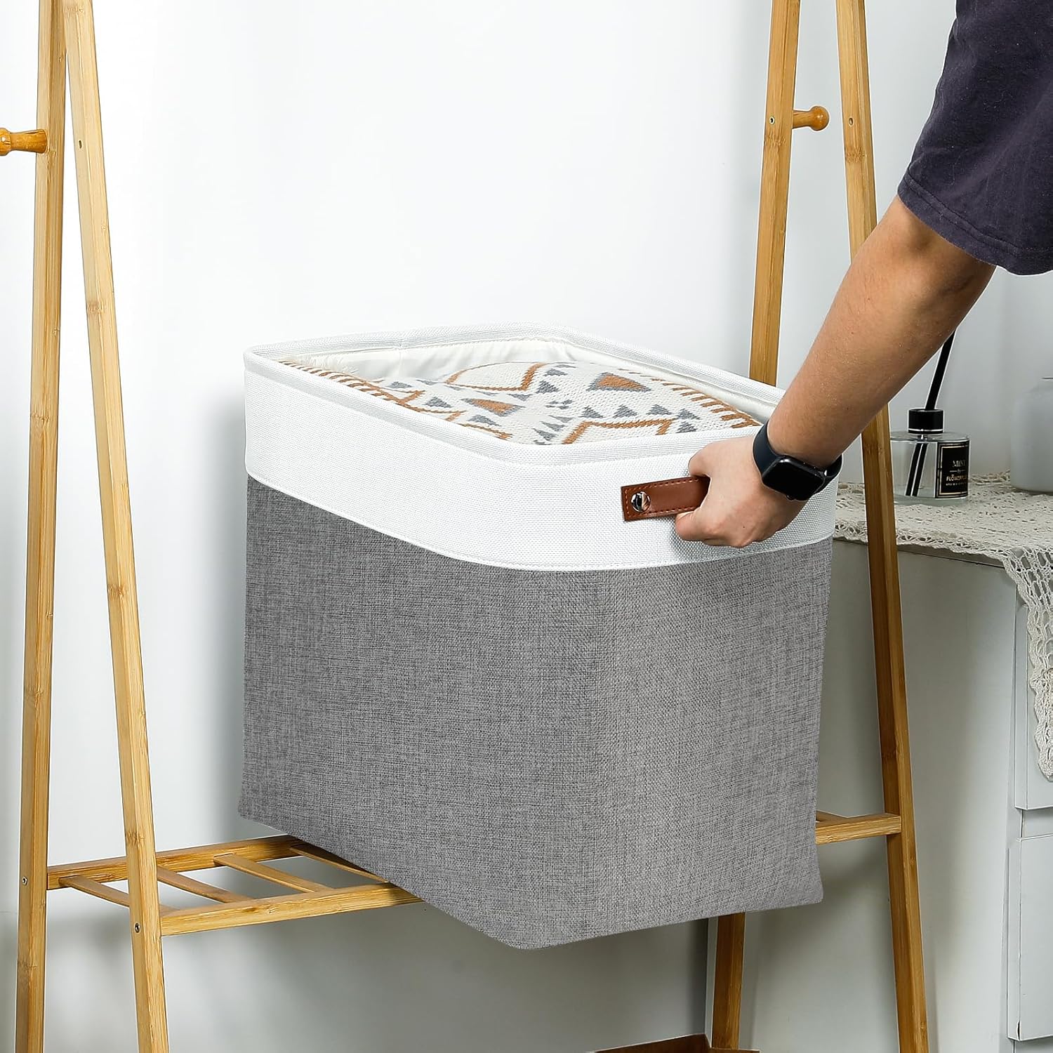 DULLEMELO Storage Baskets 17 inch Large Basket for Blanket Living Room, Foldable Storage Bins Baskets for Organizing [3 Pack] Blanket Storage Baskets Organizer for Home,Office,Closet(White&Grey)