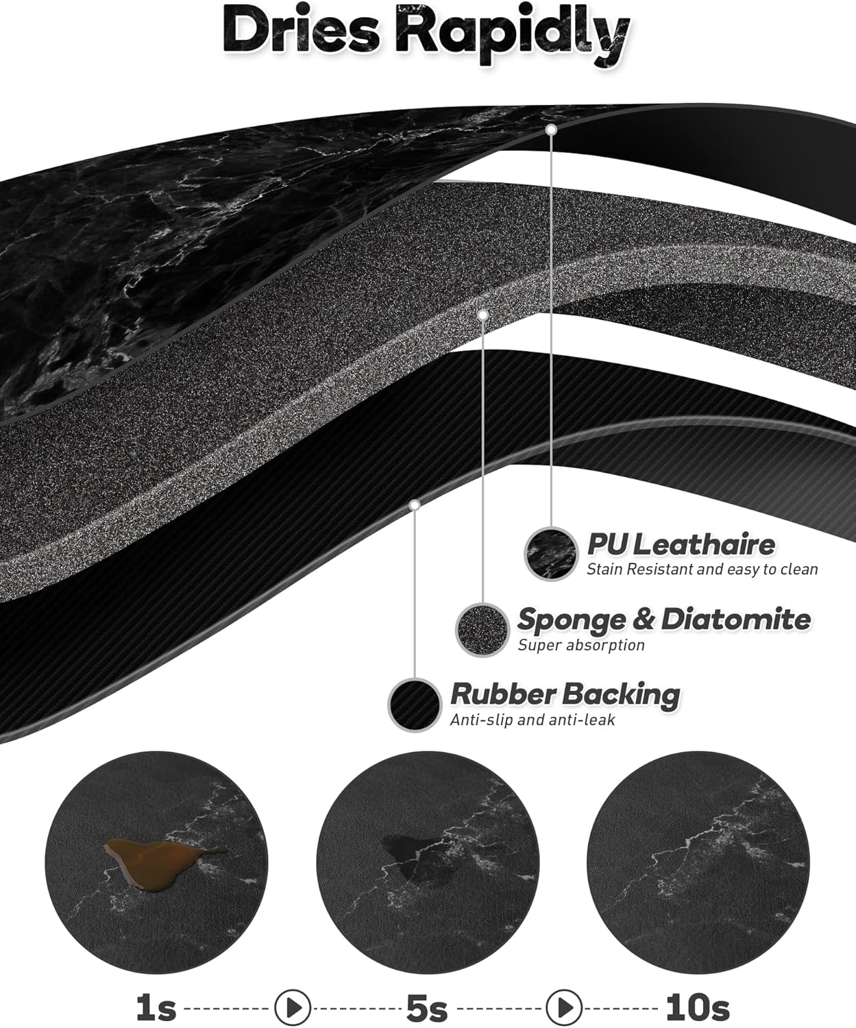 SUEH DESIGN Coffee Mat, Absorbent Dish Drying Mat 23.6 x 15.7 in Quick Dry Coffee Mat Large Drying Mats for Kitchen Counter Coffee Bar, Marble Black
