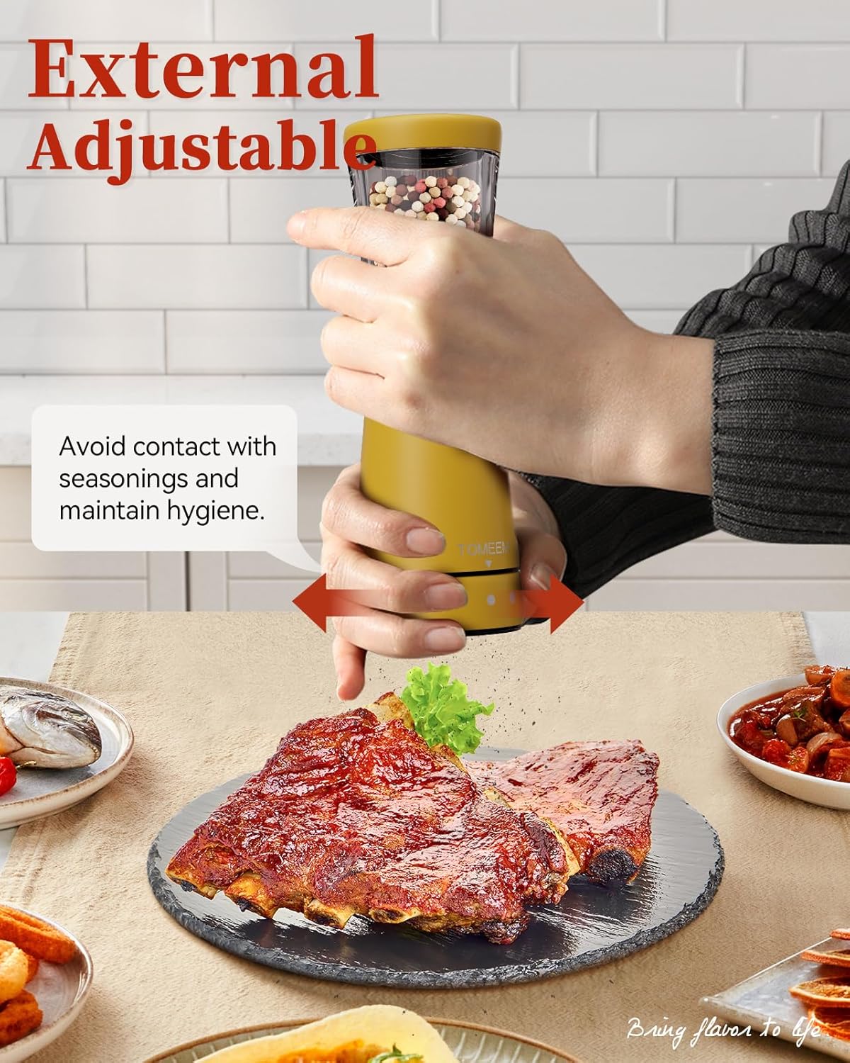 - Ergonomic Hourglass Design: This salt and pepper grinder set is beautifully crafted with a human-centric, contoured waistline, offering both a sophisticated look and a comfortable grip for all your seasoning tasks. The simple one-touch operation design ensures that even individuals with arthritis can use it with ease