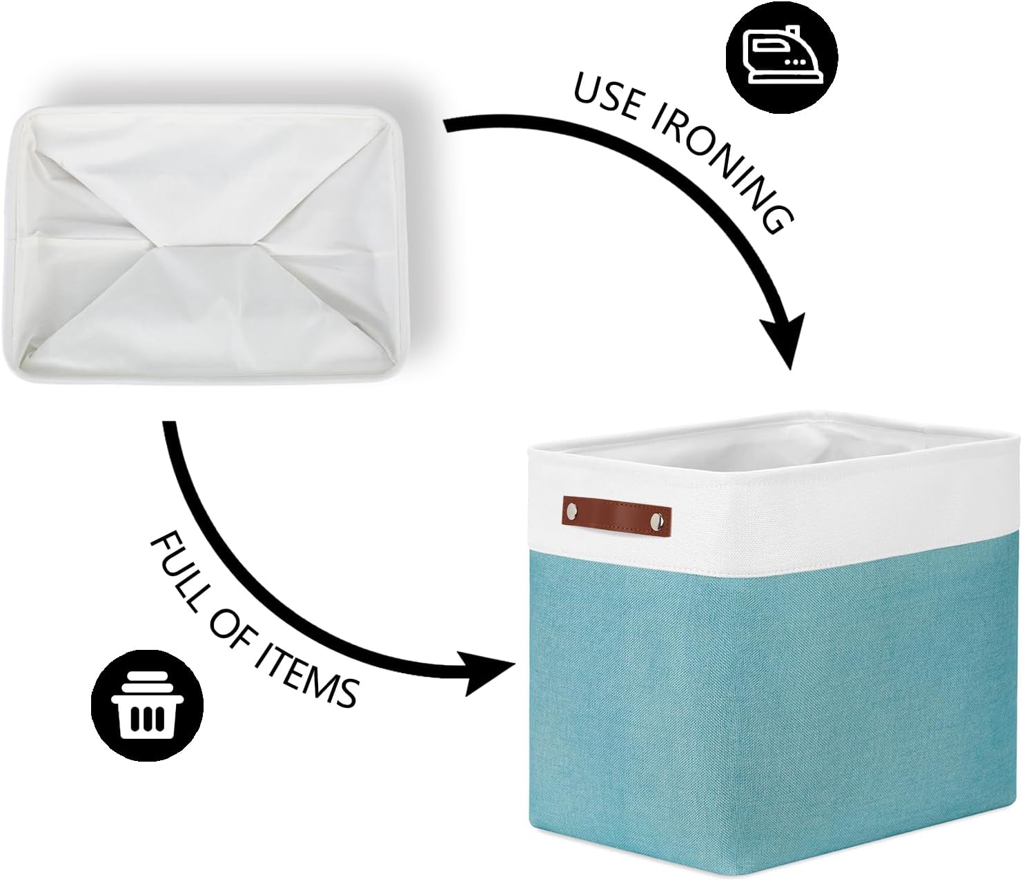 - 【Care】The fabric basket set comes with compression packing which may result in wrinkled and crumpled in long-distance transit. It can be smoothed out by steam iron.