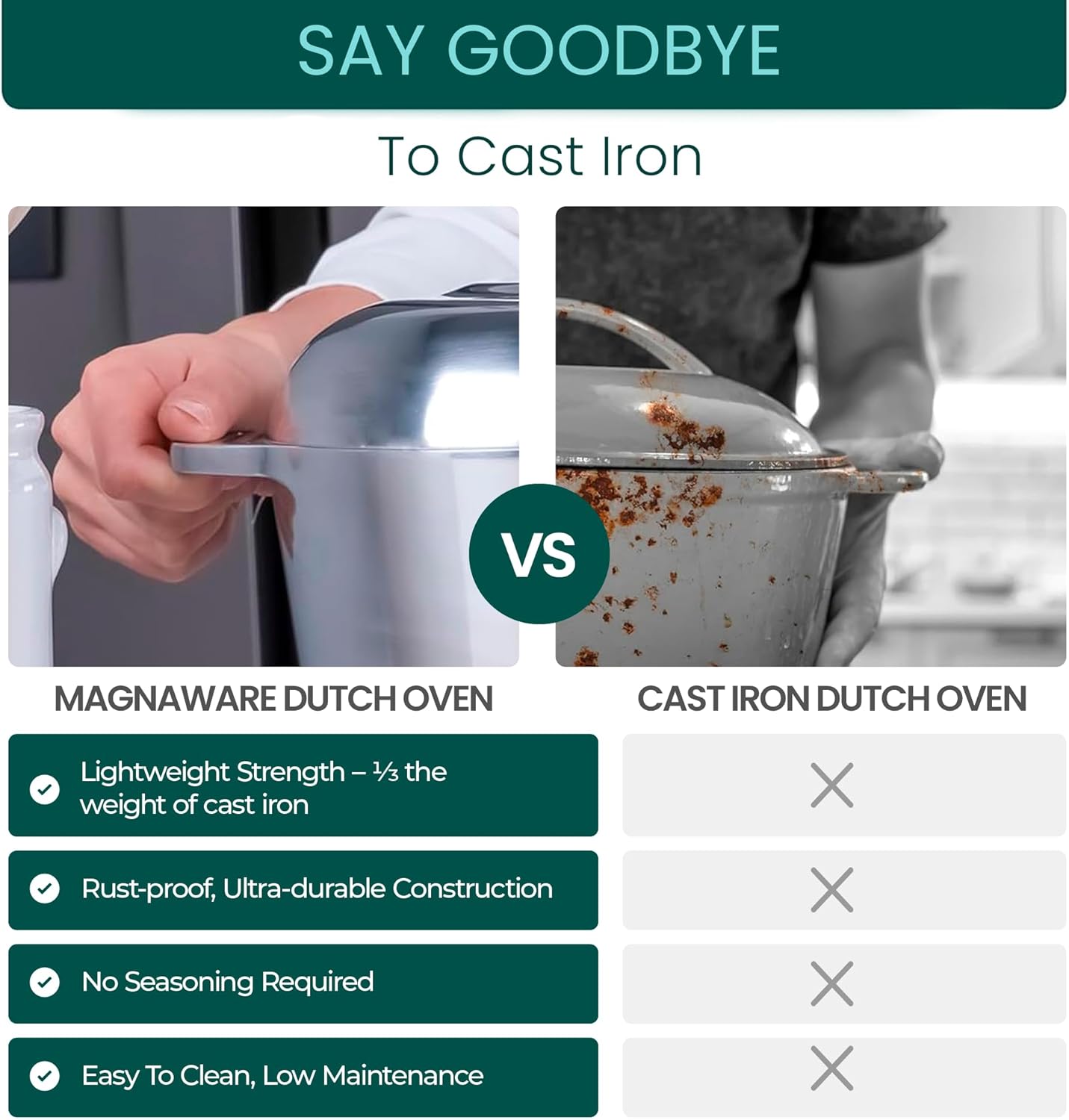 - BUILT TO LAST GENERATIONS: Constructed for durability, this heavy-duty cast aluminum pot is oven safe up to 450°F. MAGNAWARE dutch ovens feature a classic polished aluminum finish that complements any kitchen aesthetic. For best results, simply use a small amount of oil, and to preserve the surface, we recommend silicone, wood, or nylon utensils over metal ones.