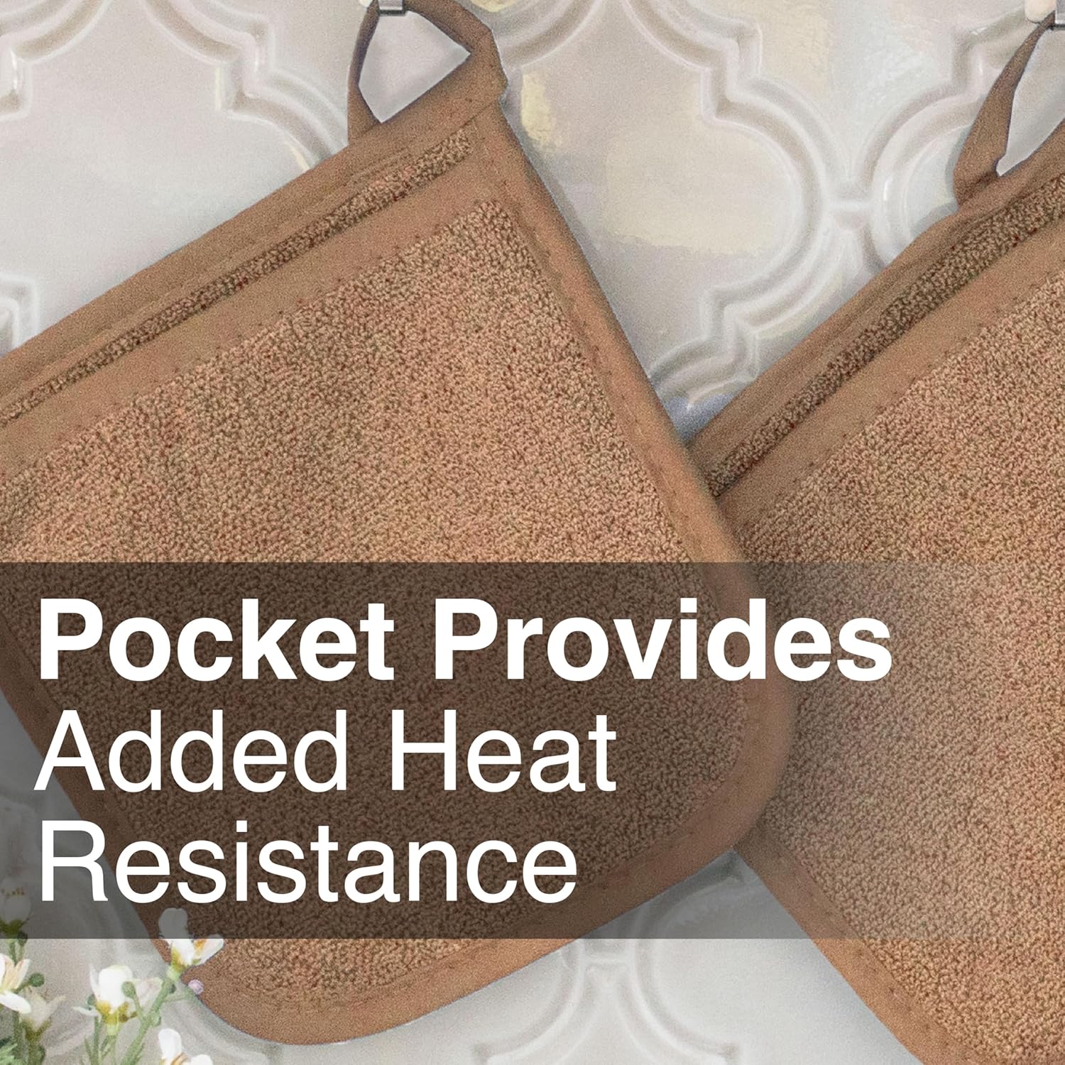 RITZ Terry Pocket Mitt & Hot Pad: Unparalleled Heat Resistant, Durable 100% Cotton,Ergonomically Designed for Optimal Grip, Easy-Care Machine Washable 4-Pack, Mocha Brown