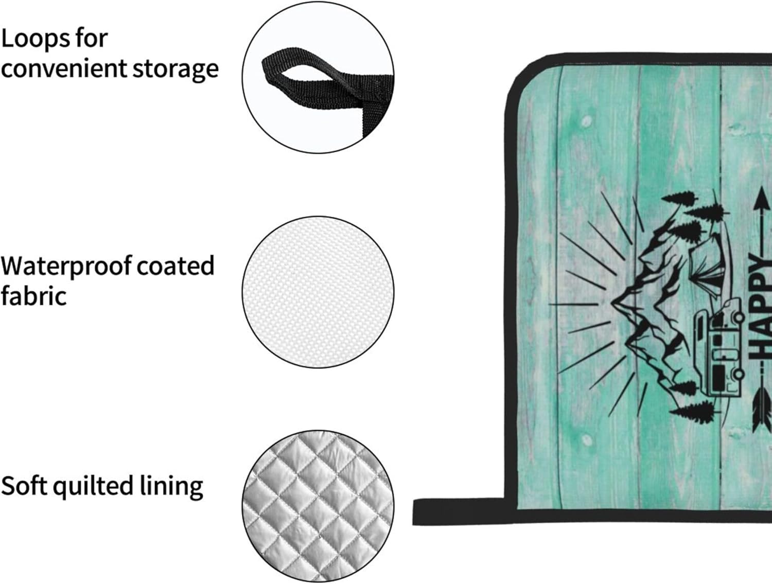 Happy Camper Oven Mitts and Pot Holders Sets of 4,Resistant Hot Pads with Polyester Non-Slip BBQ Gloves for Kitchen,Cooking,Baking,Grilling