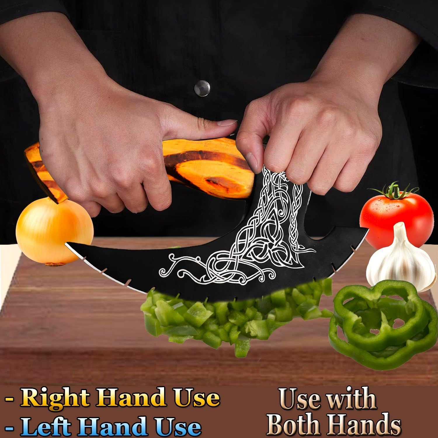 - ✅ Superior Performance with Sharp Cuts – The high-carbon steel blade with precision cut grooves ensures effortless, clean slices through pizza, cakes, meats, veggies, and even sausages. Whether it's a thin crust or a hearty loaf, this axe delivers precision and ease with every use.