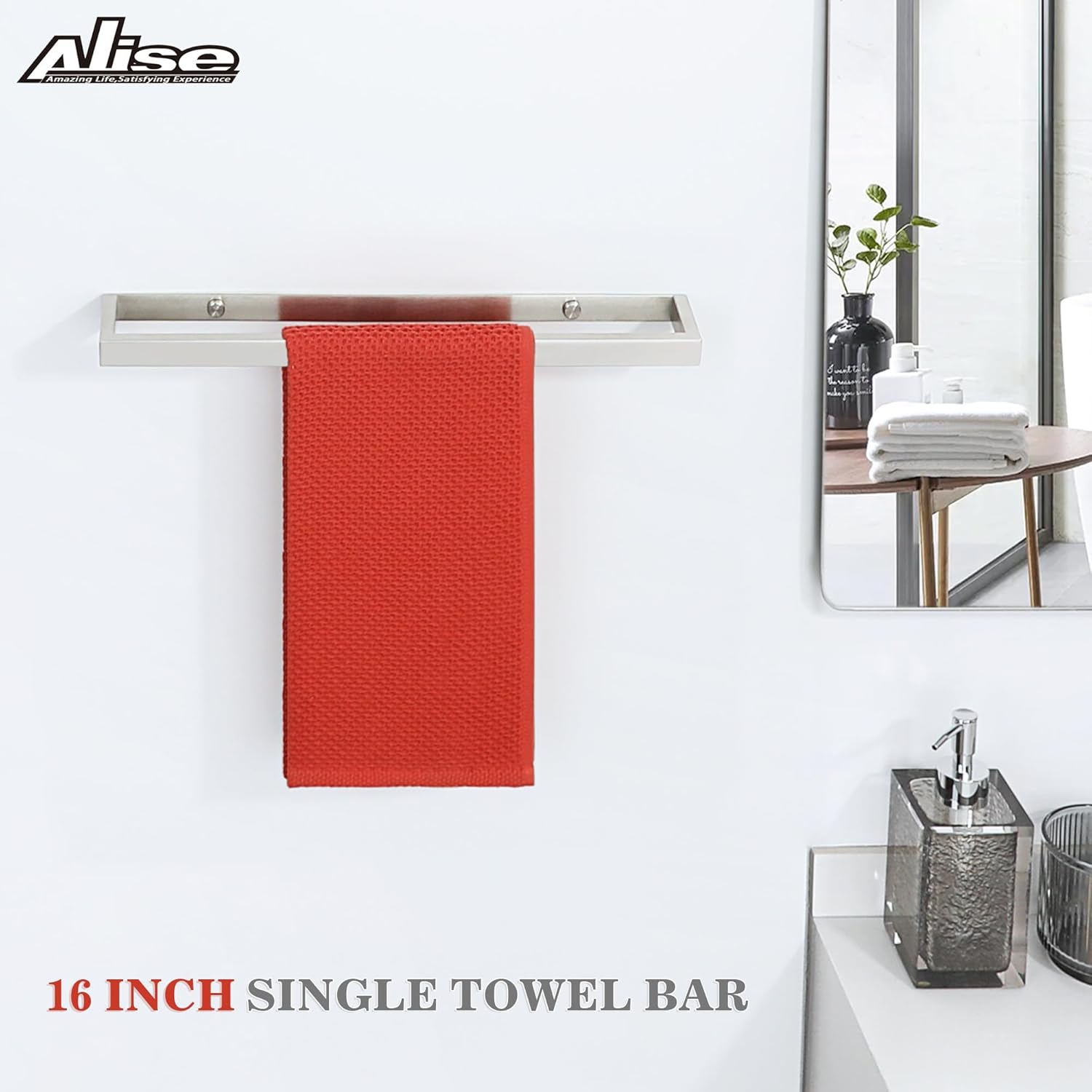Alise Bath Towel Bar,Wall Mount Towel Holder Towel Rack Towel Hanger for Bathroom Lavatory,16 Inch SUS304 Stainless Steel Towel Rail,Brushed Finish GJF040-LS