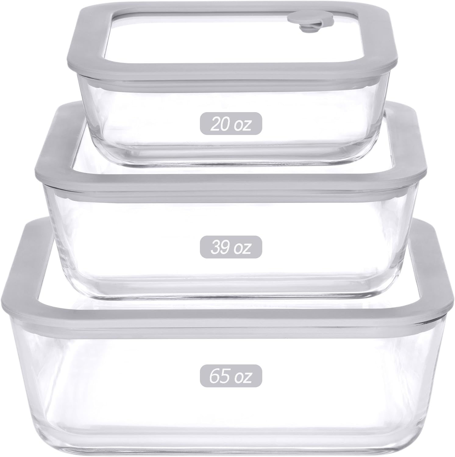 - ✅STYLISH & CLASSIC GREY COLOR: Our glass container set features clear glass lids with stylish light grey silicone frames for easy viewing that puts your leftovers in the spotlight. Each set comes in modern colors that will match with your classic collection.