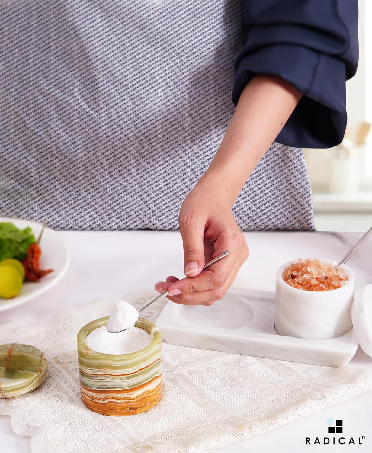 - WHAT IS INCLUDED - Set of 2 Salt Cellar With Spoon And 1 x Tray. Comes Along With RADICALn Branded Secure Packaging.