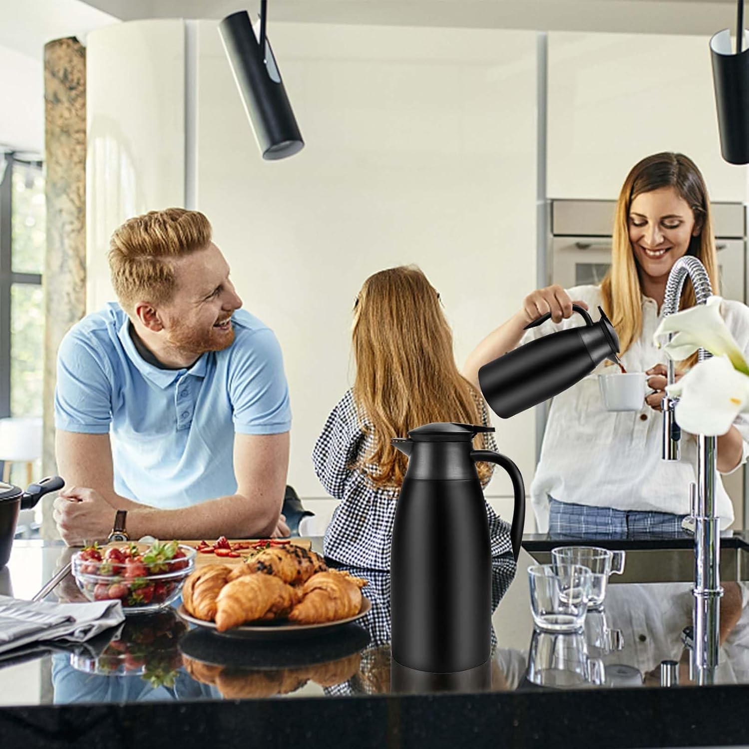- 70OZ CAPACITY:This is an ideal size for everyday use. It is not too big, nor too small, but just right, giving you 12 cups of coffee throughout the day. This thermal coffee carafe is a must-have for home, and is also ideal for restaurants, offices, parties, camping, cafes, travel.