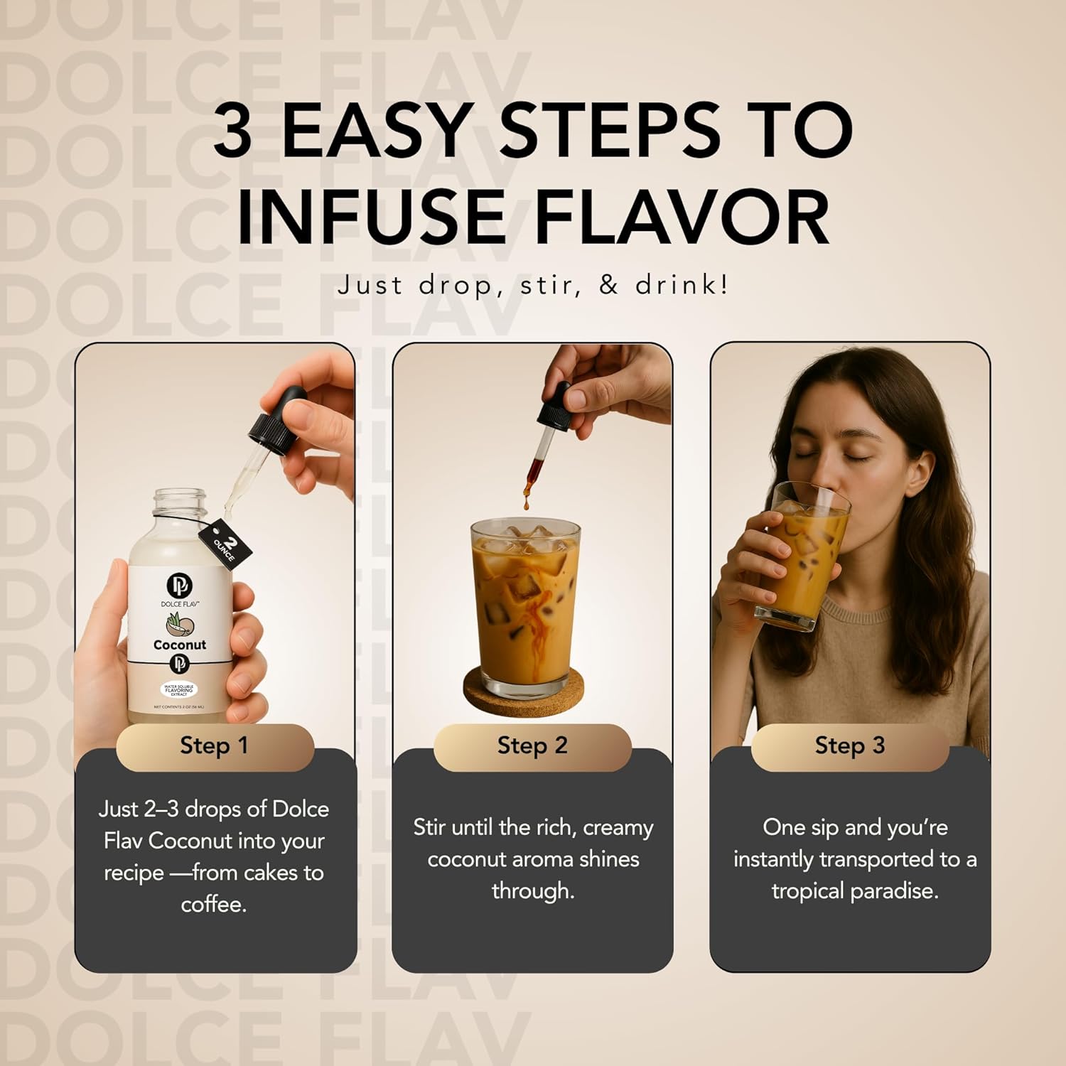 - Elevate Your Baking Adventure – Elevate your baking creations with Dolce Flav's water-based, unsweetened coconut extract flavoring. Infuse a touch of tropical paradise into your everyday recipes, transforming your culinary experience into something extraordinary.