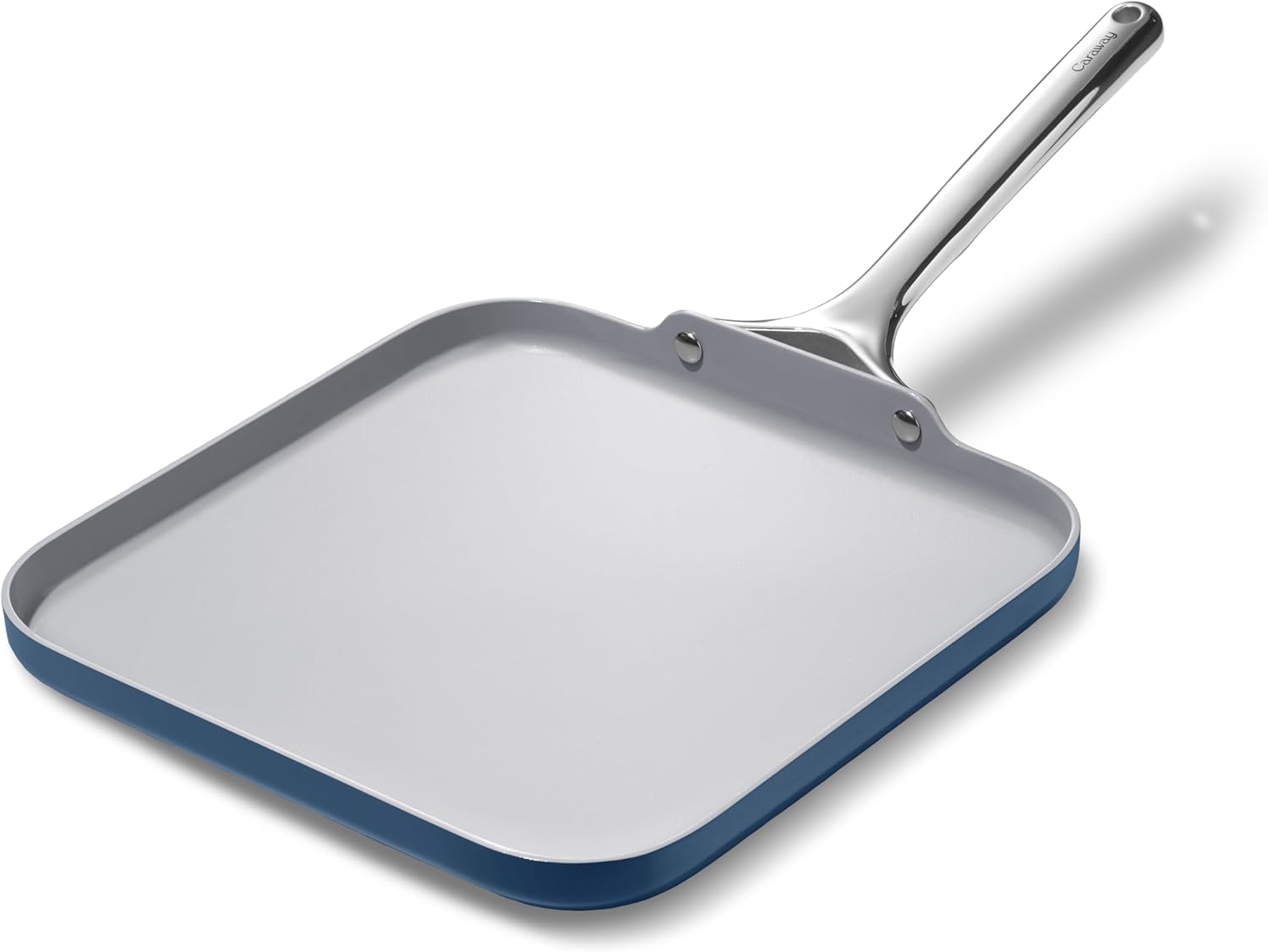 Caraway Square Griddle Pan - 11” Square Pan - Non-Stick Ceramic Coated - Non Toxic, PTFE & PFOA Free - Oven Safe & Compatible with All Stovetops - Navy