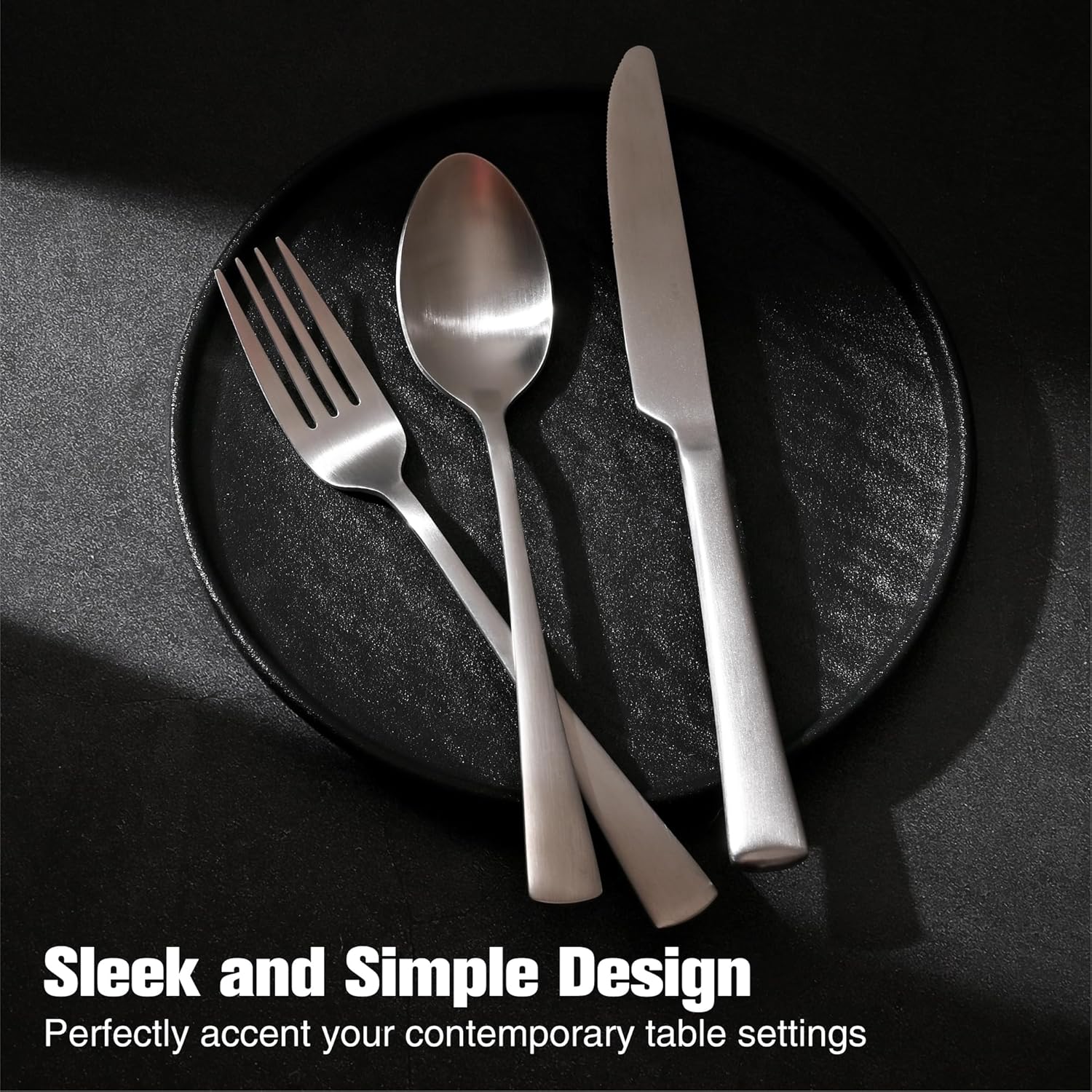 - Sleek and Modern - KINGSTONE stainless steel cutlery set features sleek lines and contemporary sihouette, simple and elegant design, will fit into any kitchen. The slightly thicker handle, making it easier to hold on to, allowing you to enjoy a seamless dining experience with every use.
