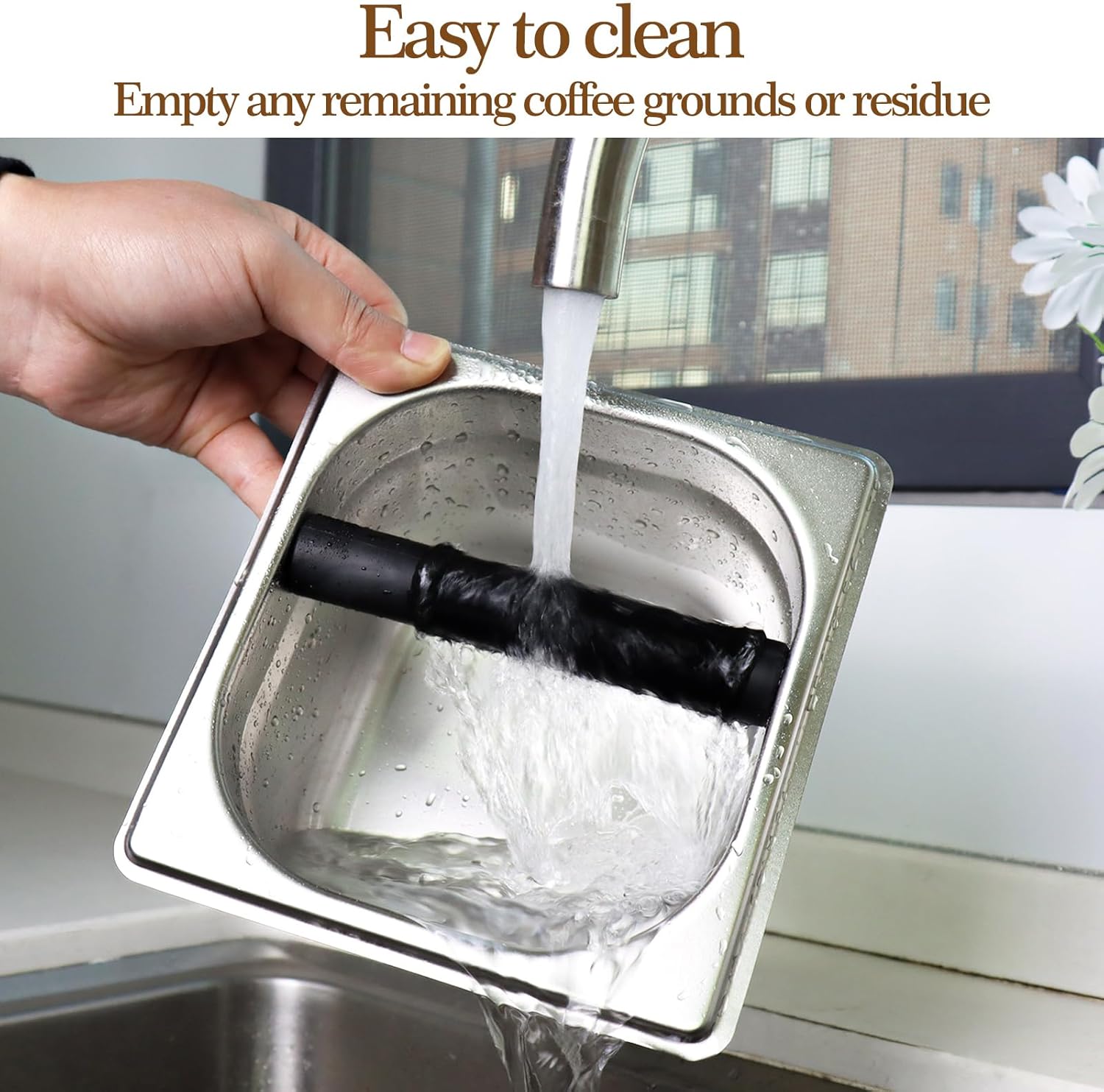 - Easy to Clean: The detachable design makes the stainless steel coffee knock box dishwasher-safe. Wooden boxes are not easy to get dirty, Simply wipe with a soft cloth and air dry