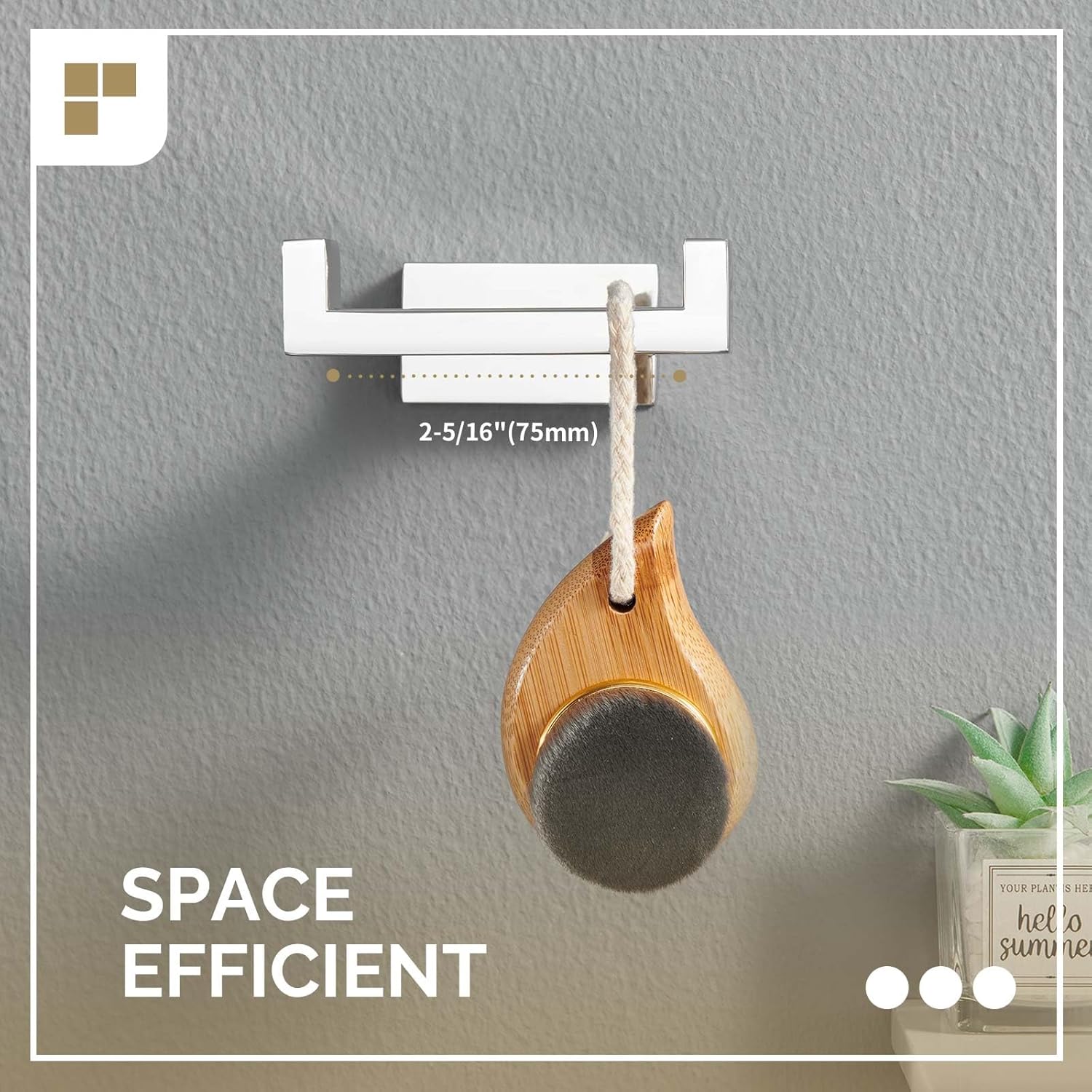 Angle Simple Bathroom Towel Hook, SUS 304 Stainless Steel Hand Towel Double Hook for Wall, Robe Coat Holder, Polished Chrome