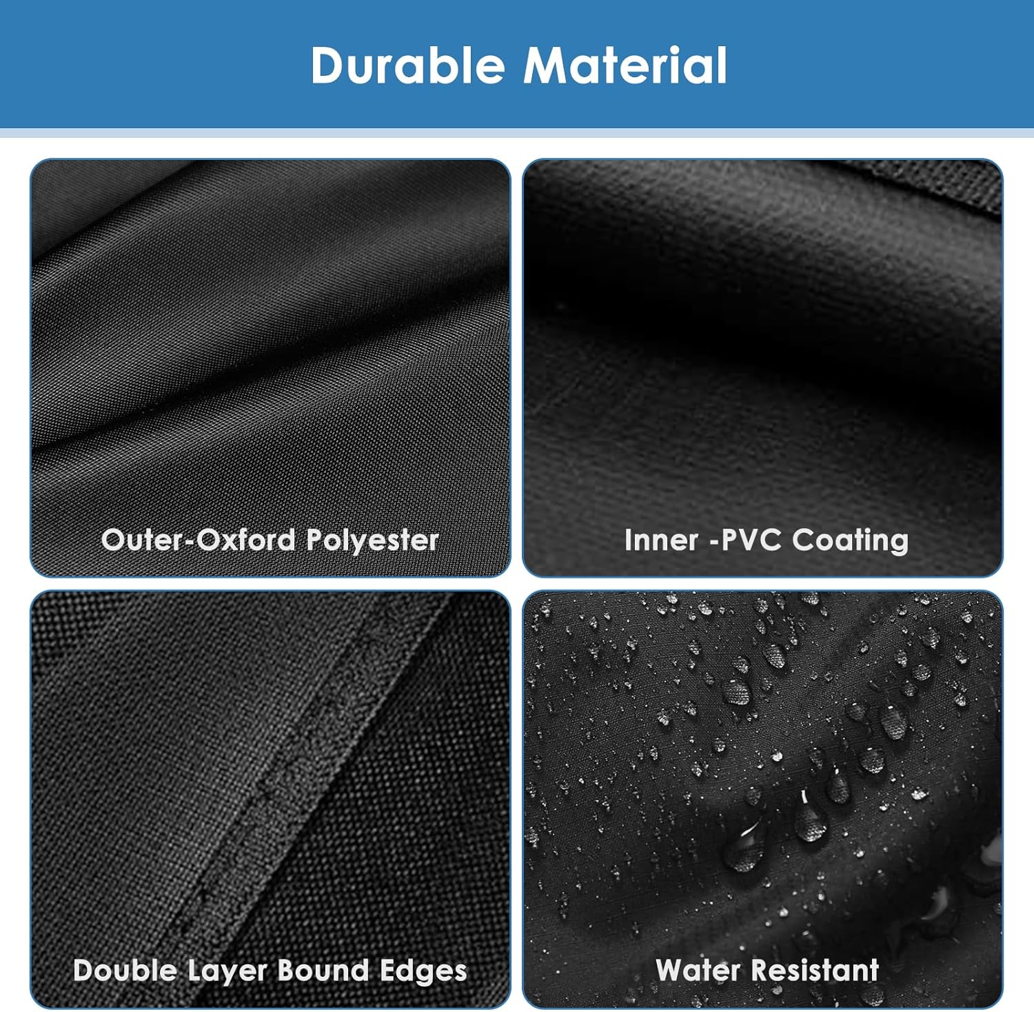 - Material: The built-in cover is made of 600D high-density oxford fabric with an internal PVC coating, can protect your grill from strong winds, storms, sunlight, snow, dust, and debris, durable and long-lasting. Has good UV resistance, color fastness, waterproofing, low temperature resistance, and tear resistance functions.