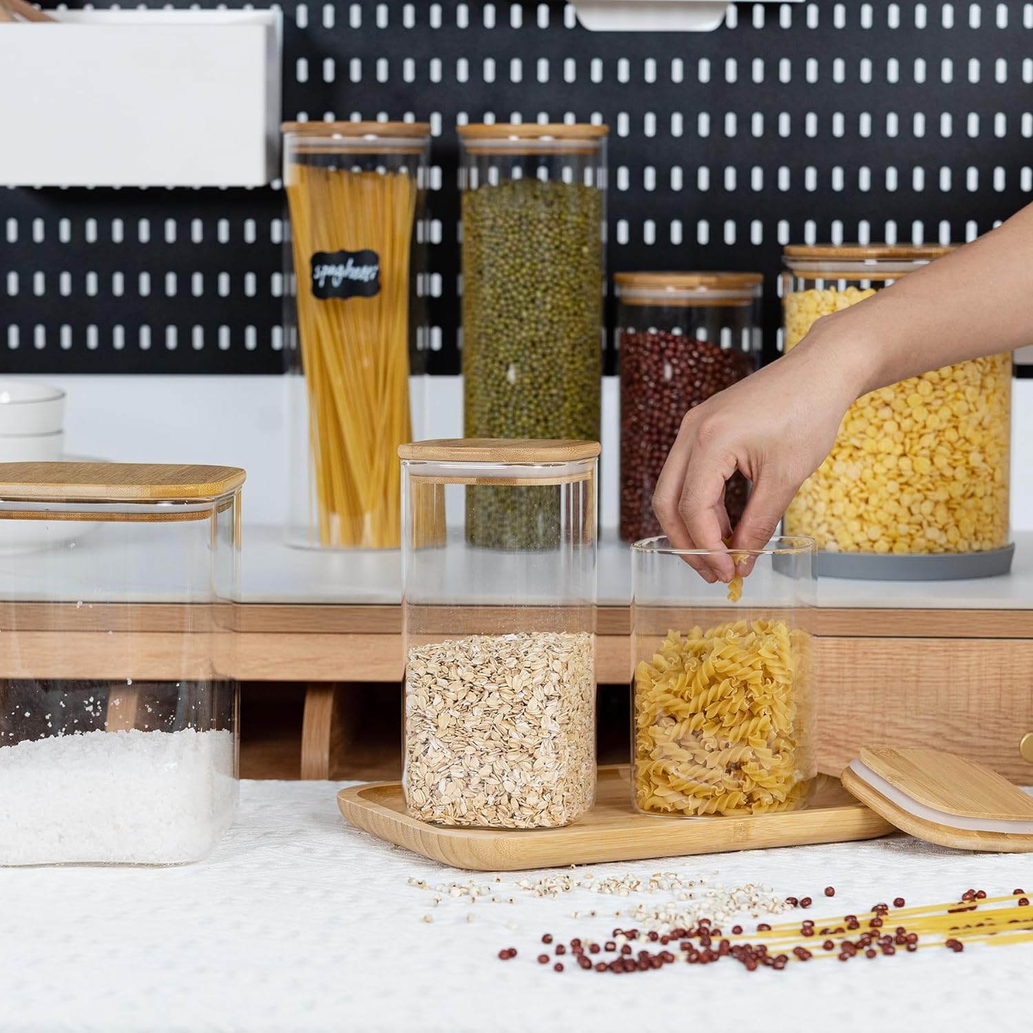 - [Transparent jar]- Transparent square glass containers make your items visible, allowing you to clearly see the contents of the glass storage jar and the remaining stock, and then you can easily replenish the food that is about to run out.