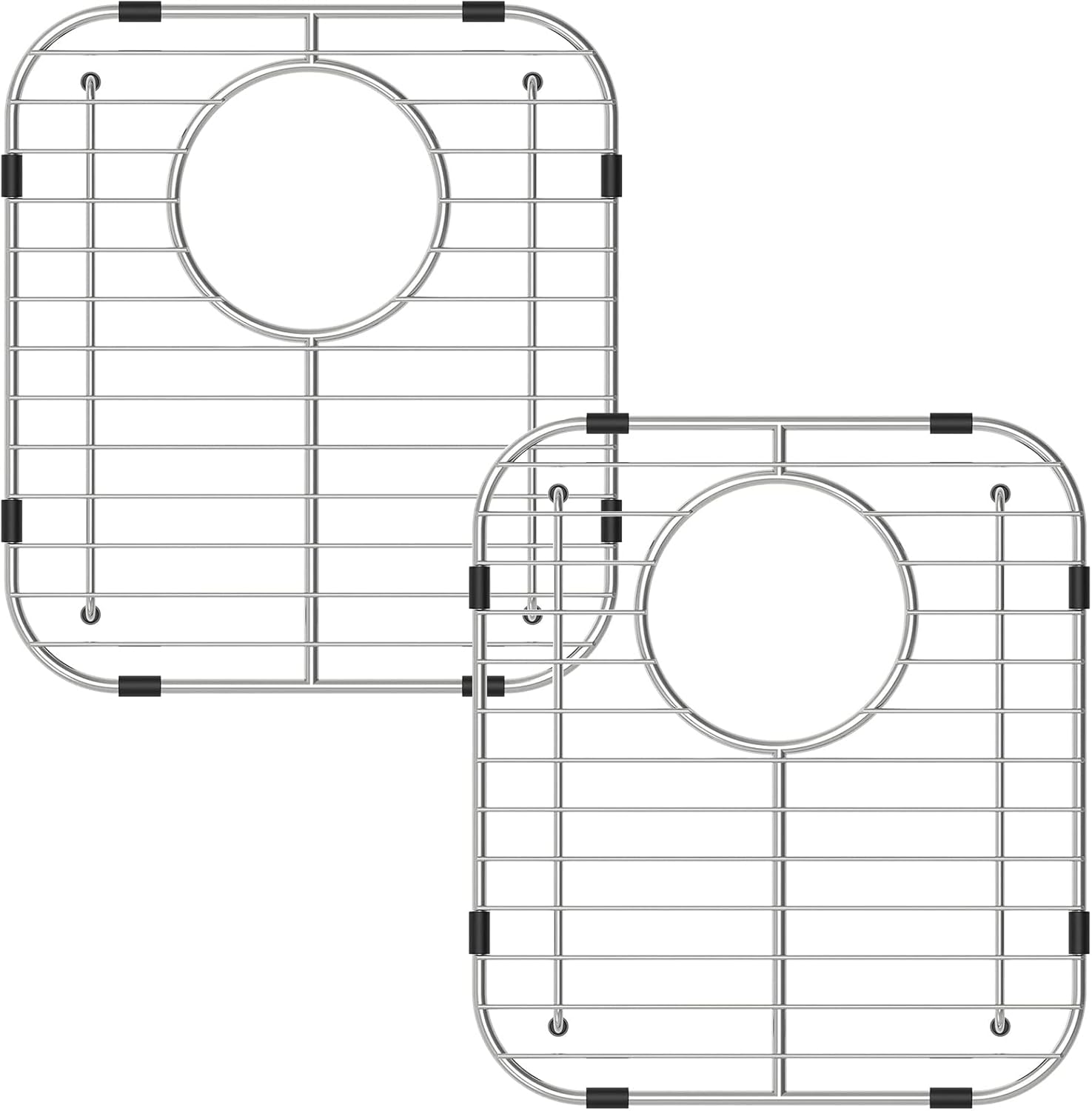 Bottom of Sink Protector Rack, Stainless Steel 13.2"x11.6" Sink Grid Dish Drying Rack Grate with Rear Drain Hole 2 Packs