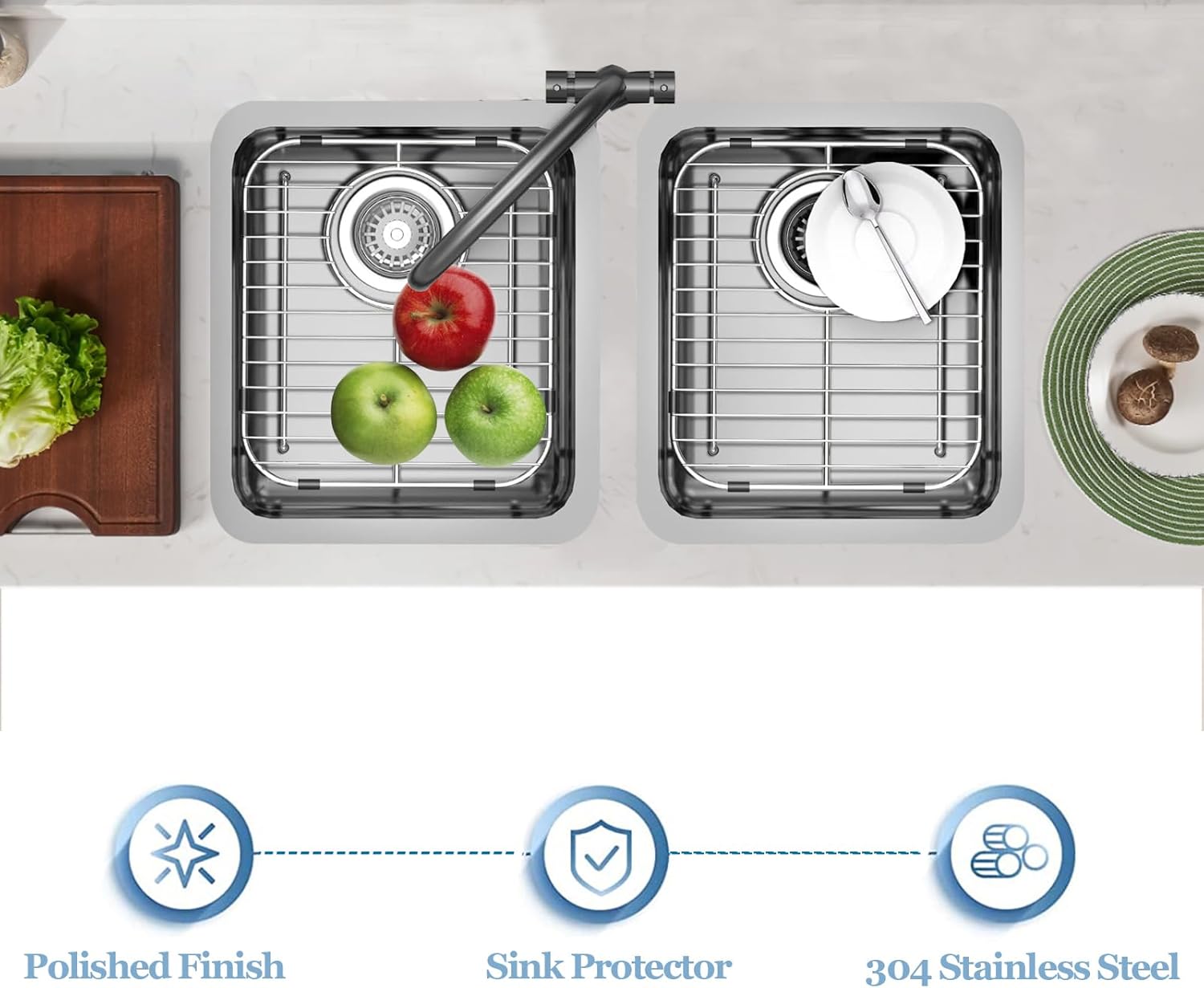 - ✔ Protect Your Sink - Sink Grids are the simplest way to avoid scratches and damages from cutlery and dishes. The vinyl feet and protective bumpers keeps the sink grid and the surface of the sink at a good distance, ensures the grids leave no marks.