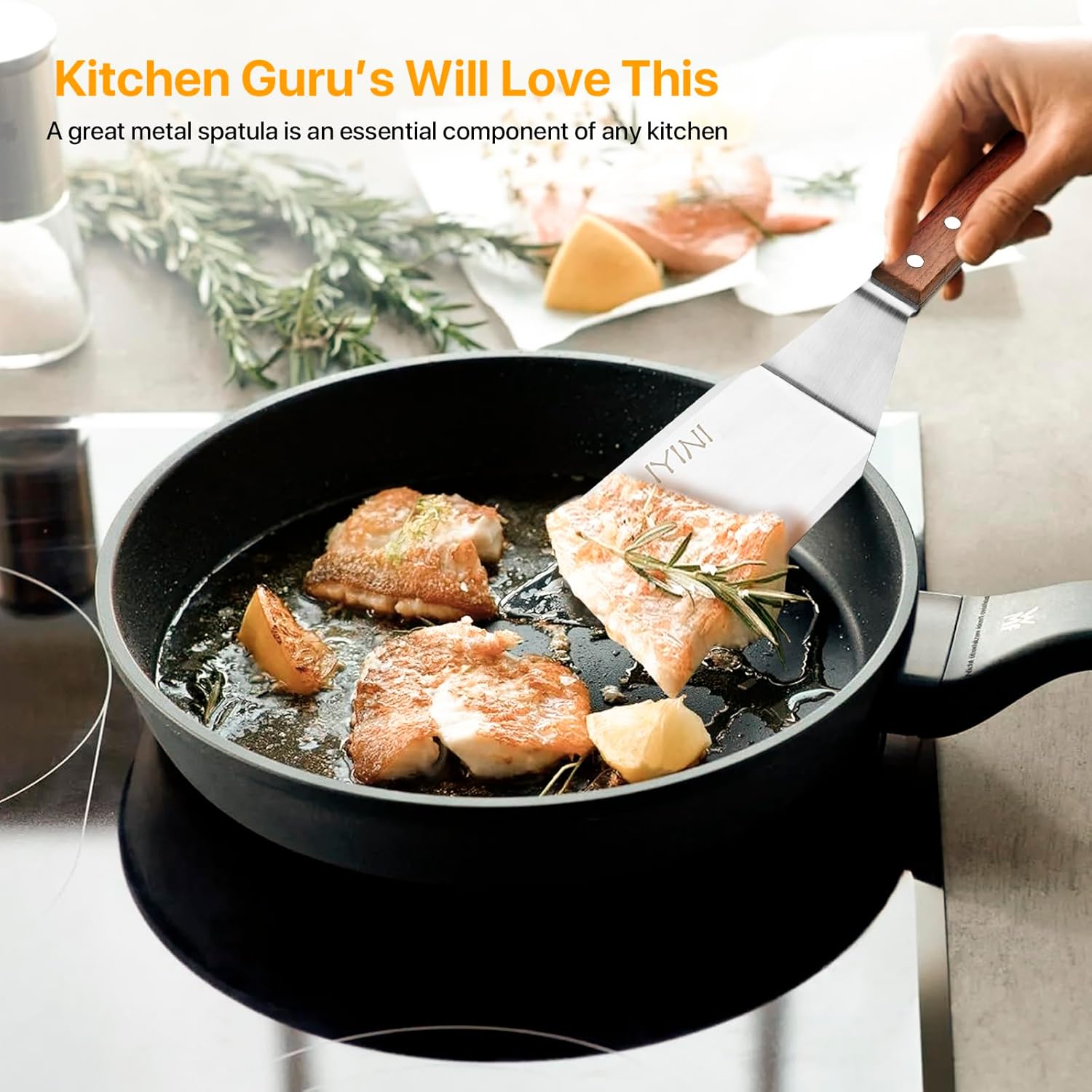 - QILIYINI’S SIGNATURE SPATULA – Protect your cookware with our professional grade stainless steel spatula. Perfect for cast iron griddles, BBQs, and flat top grills