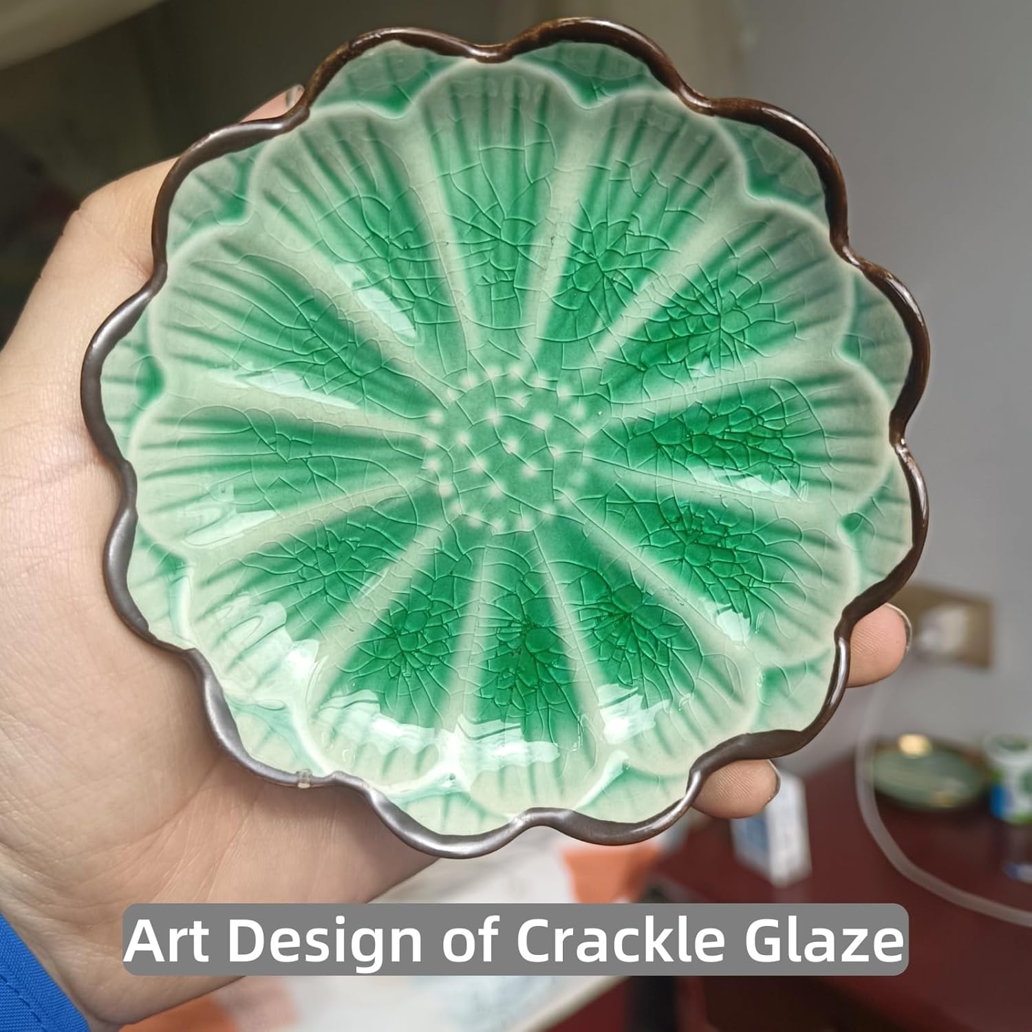 Ceramic Spoon Rest for Stove Top, Flower Cute Spoon Rest for Kitchen Counter, Cooking Spoon Holder for Kitchen Counter, Utensil Rest Spatula Rest Ladle Holder Tong Rest, 1 PC (Ice Cracks, Emerald)