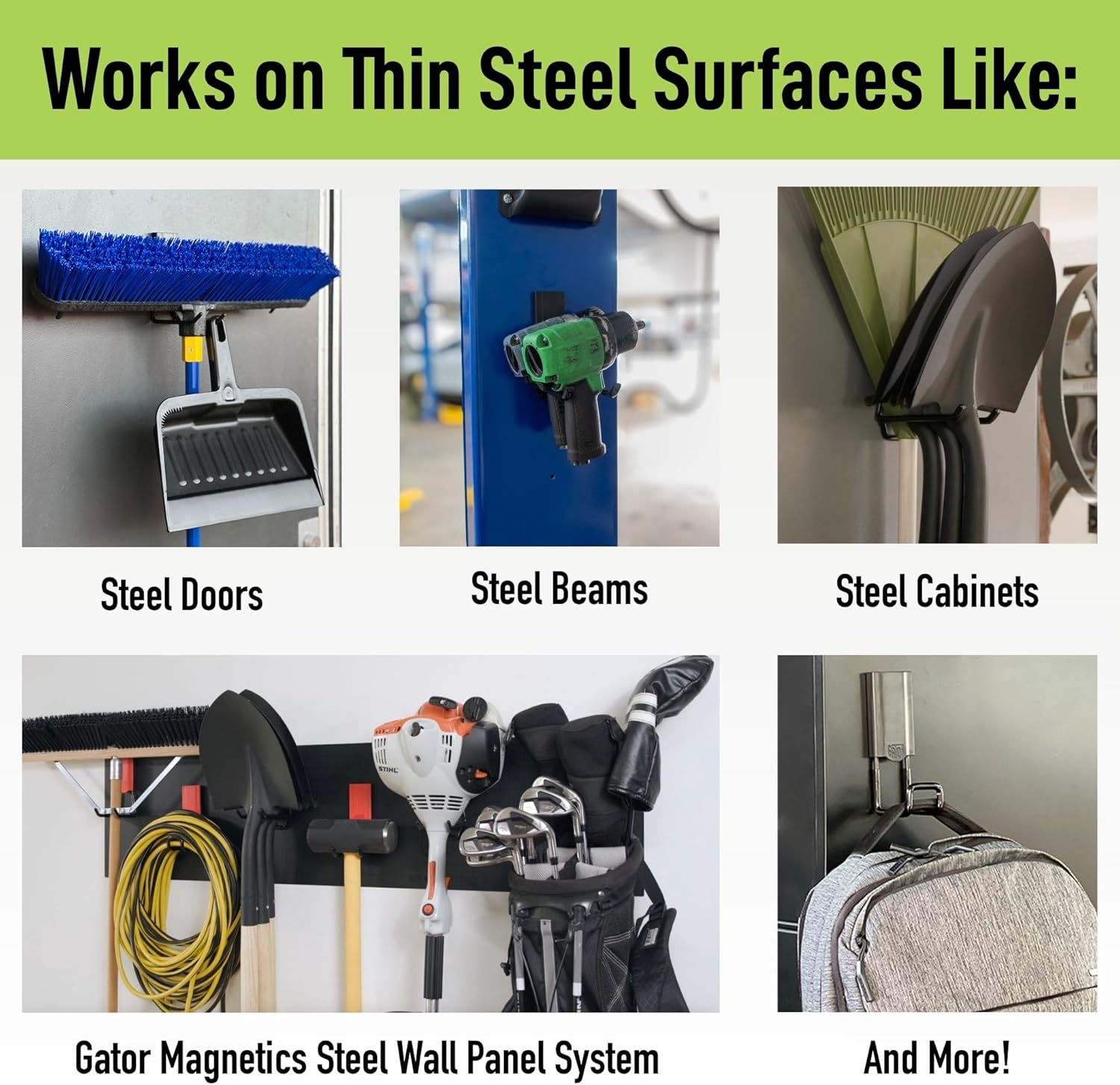 - Up to 25 lbs of Heavy-Duty Holding Power: Gator Magnetics’ patented magnetic hooks deliver unrivaled shear strength on thin steel surfaces, resisting slips where traditional magnetic hooks fail
