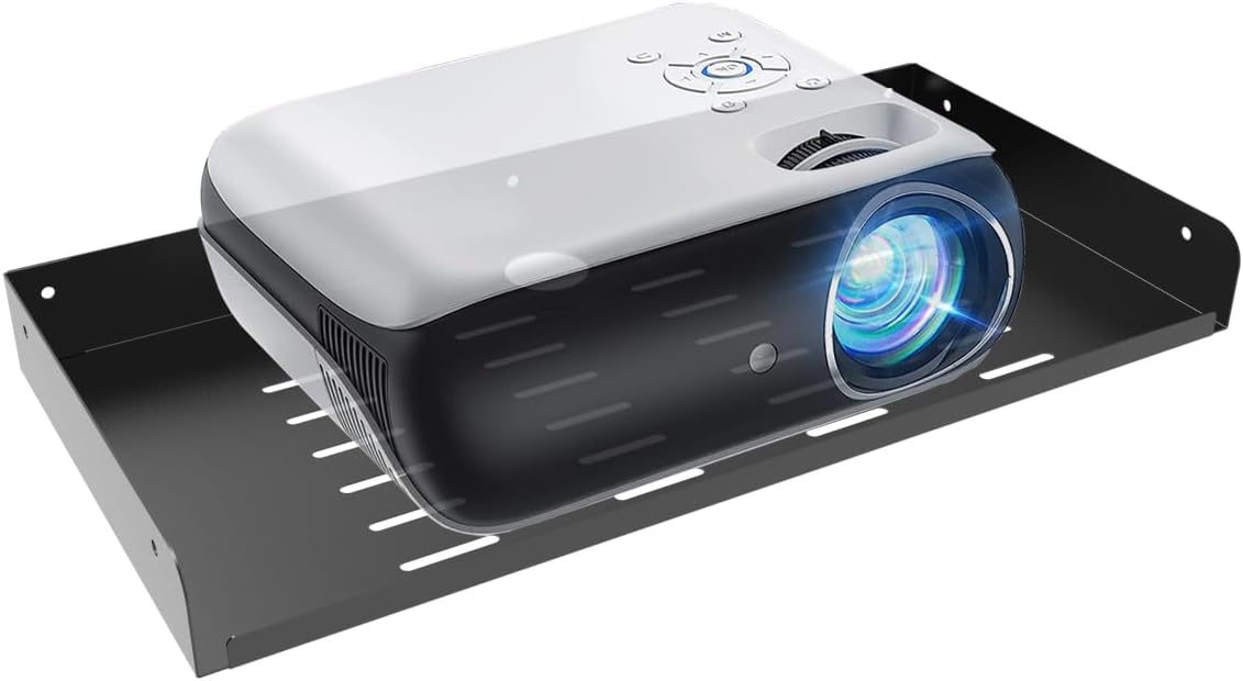 JINGCHENGMEI Metal Floating Wall Mounted Shelf Bracket for AV, TV Accessories, WiFi Router, TV Box, Cable Boxes, DVD Player, Games Consoles or Other Small Projectors (16.6 inches Width)