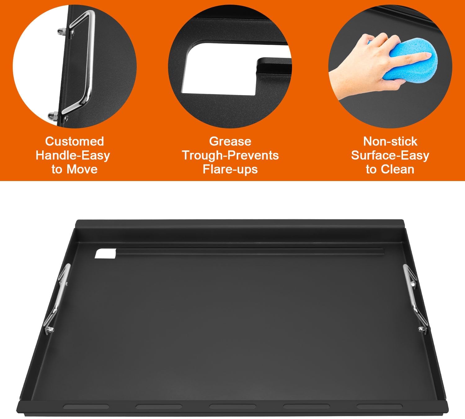 - 【CONVENIENCE & VERSATILITY】The handles are handy for moving the griddle. The large surface area makes it ideal for cooking multiple items at once. Whether you're cooking for a family gathering or a party with friends, this griddle has you covered.