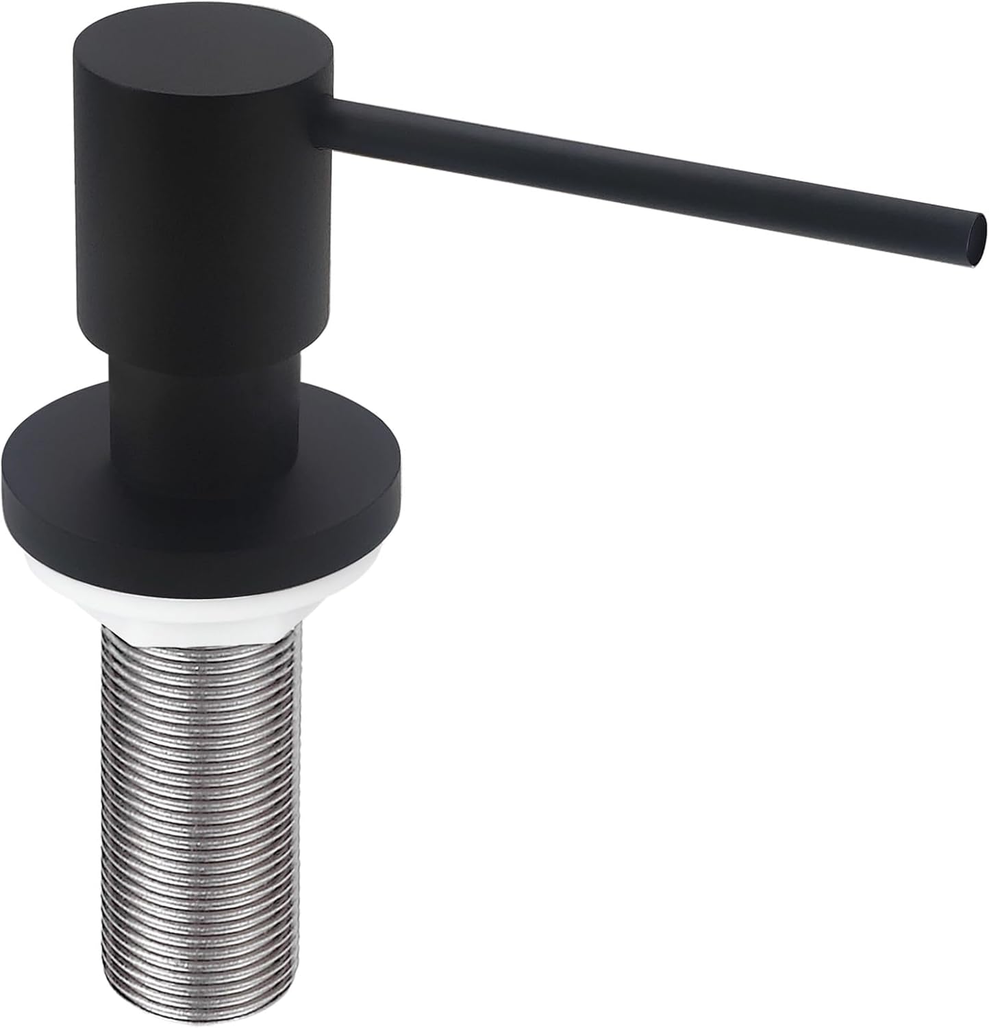 - Built To Last:Sturdy built in sink soap dispenser for kitchen sink,pump head, pump core and threaded tube are made with solid brass, equiped with corrosion resistant spring. It comes with a 17 OZ large plastic bottle. SOLID BRASS CONSTRUCTION Matte black rust resistant finish that will not tarnish as time goes on. The heavy soap dispenser pump mechanism is designed for long lasting excellent performance to dispense consistently with each and every press. Matching perfectly with most faucet models from different brands.