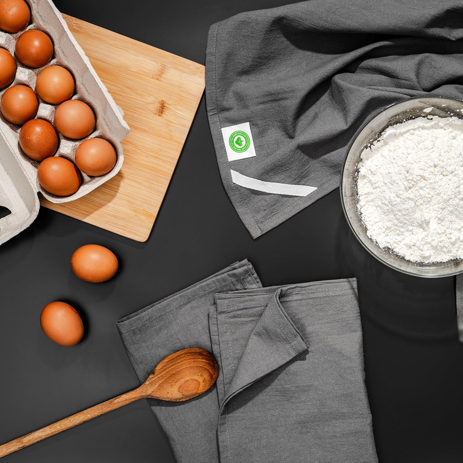 Organic Cotton Gray Tea Towels - 10 Pack, 27"x27", 100% Cotton Gray Flour Sack Towels for Kitchen and Baking Use - Durable, Absorbent and Customizable Gray Dish Towels (10 Pack Gray)